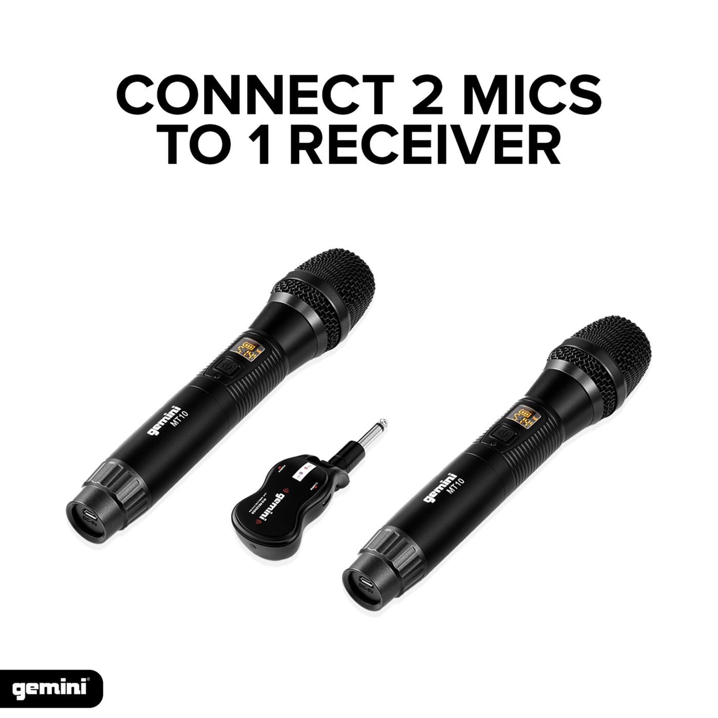 Gemini Dual Wireless Microphone Uhf Handheld Rechargeable Cordless Mic System 2 Pack With Receiver For Karaoke Singing Dj Perfor