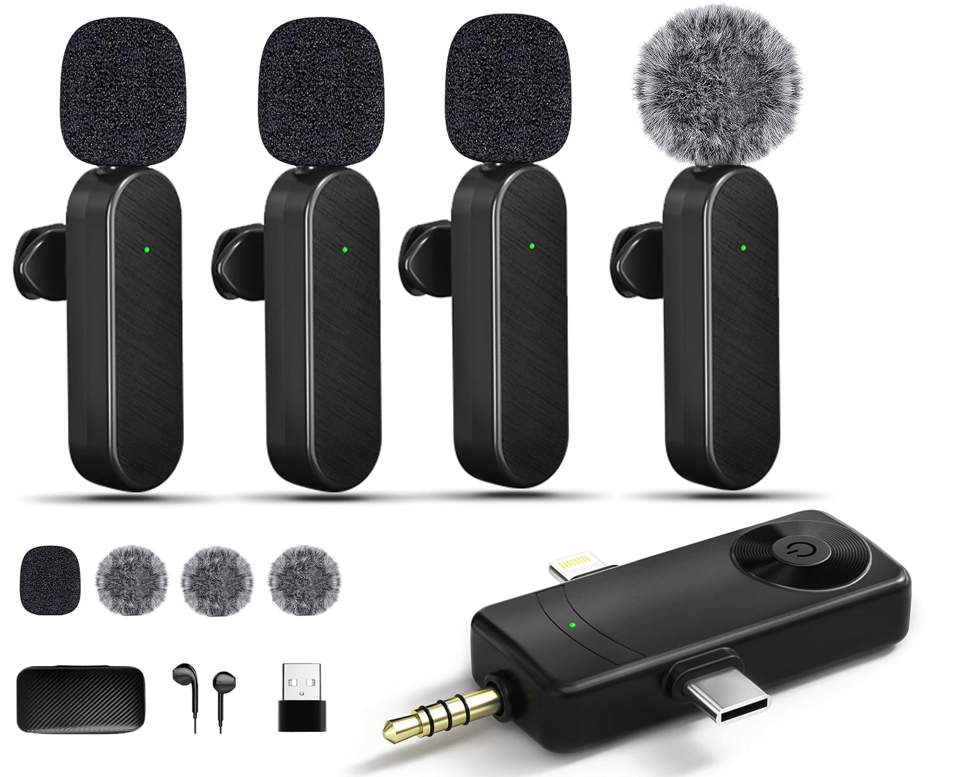 [This microphone really supports 4 microphones at the same time]: This innovative lavalier microphone really supports 4 microphones at the same time, which means that it can support 4 people to record audio at the same time, instead of the third microphone only being used as a backup microphone.