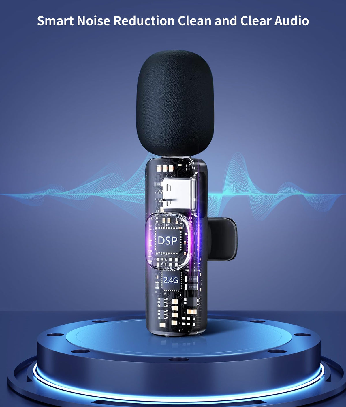 Jounivo 2 Pack Wireless Lavalier Microphone For Iphone, Mini Mic With Noise Cancellation For Interview Video Podcast Vlog Youtub