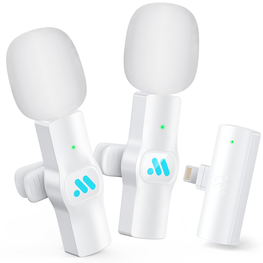 Leettus Lavalier Wireless Microphone for iPhone 7-14 iPad,mini Microphone for Game Live Streaming,Interviews,Video Recording(Whi