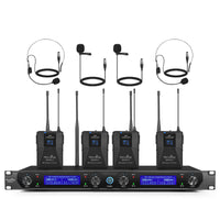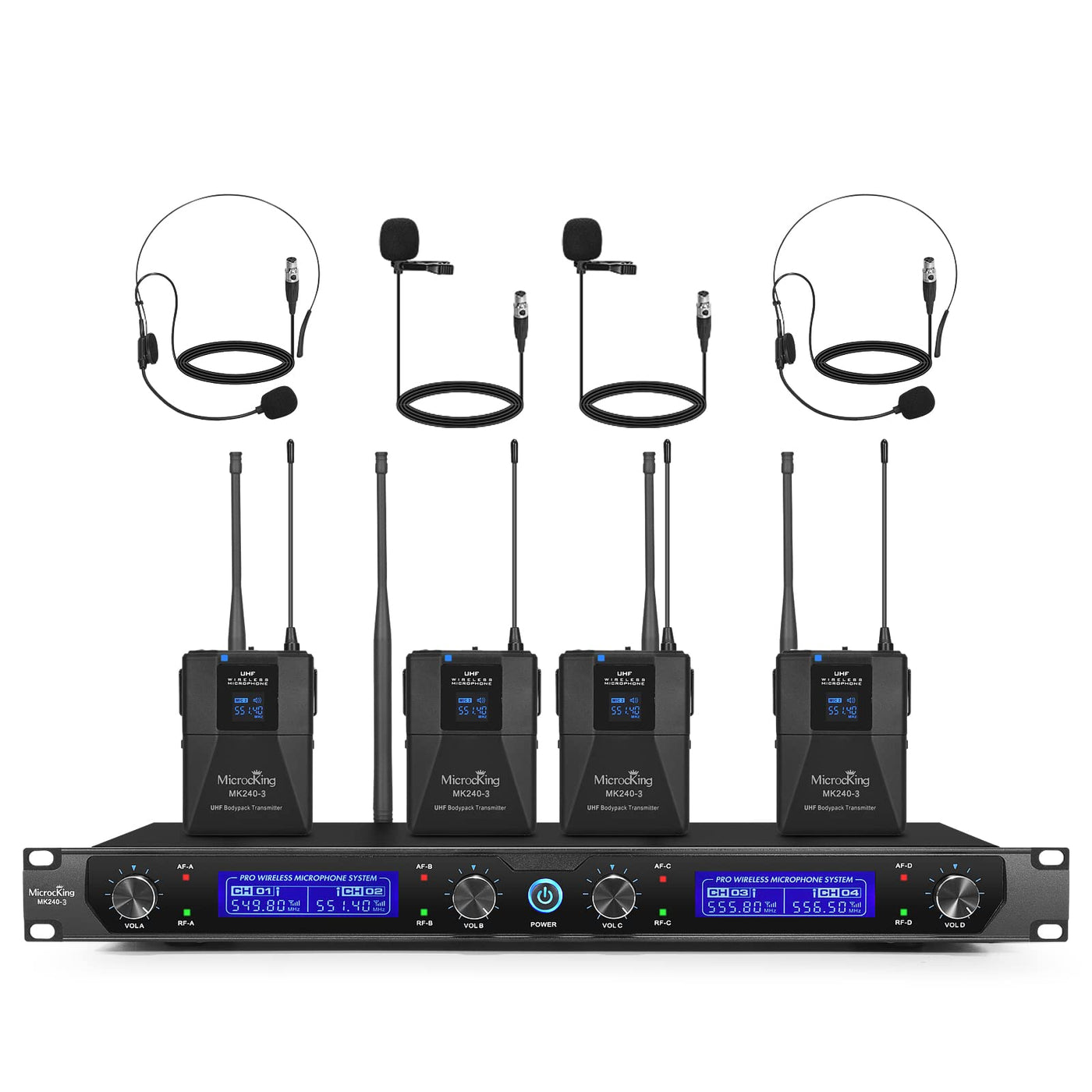 Microcking Uhf Wireless Microphone System Cordless Lapel/Headset/Lavalier Mic(4 Bodypacks), Fixed Frequency, Long Range 400Ft, I