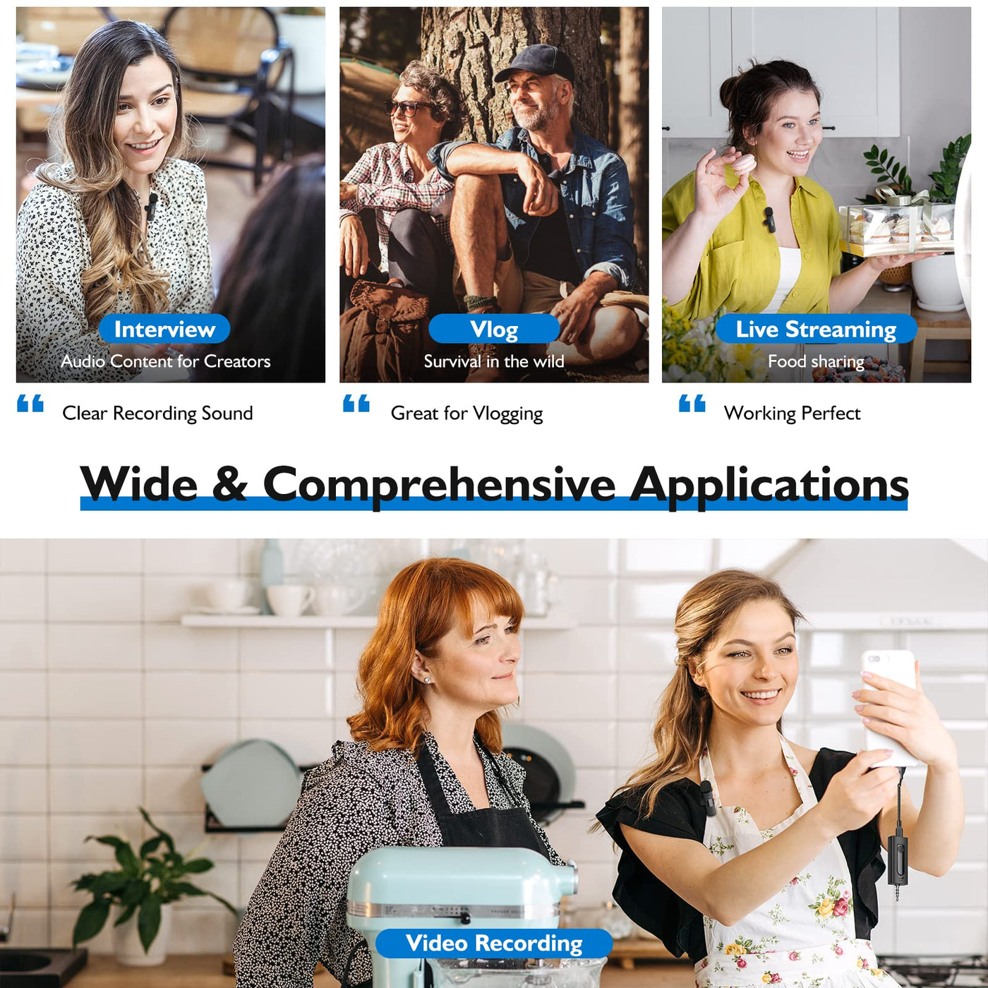 Compatible With Iosandroidcamera: Our Upgrade Wireless Lavalier Microphone Has Full Compatibility, With The Usb C, 35Mm Trs Trrs, Iphone Adapter Cables We Give You, You Can More Easily Connect Iphone7-13, Ipad Airpro Series, Most Android Smartphone, Canon Eosnikon Camera, Various Camcorder, Voice Recorder, Pc, Laptop, Etc(Note: Some Android Phone Need To Go To System Settings Open Otg) Easy Connection, Plug-And-Play: This Mini Lapel Mic Is Easier To Set No Bluetoothadditional App Needed Select The Adapter Cable Suitable For Your Phonecamera Or Other Device, Connect The Receiver To Your Device, And Then Turn On The Power Switches Of The Two Parts Our Wearable Microphone Will Successfully Pair And Automatically Pick-Up Sound Within 1 Second, Then You Can Easily Complete Video Recording, Presentation, Live Broadcast Omni Sound Reception & Smart Noise Reduction: This Professional Innovation Microphone Has Omnidirectional Sound Reception Technology, Equipped With High-Density Spray-Proof Sponge And High-Sensitivity Sound Receive Microphone Inserted Intelligent Noise Reduction Chip, Allowing You To More Effectively Identify Original Sound In Noisy Environments, Clearly Record Every Detail, And Makes Post-Editing Denoising More Convenient Lavalier, Wireless & 65Ft Audio Range: This Wireless External Mic Get Rid Of Wire Twining, Small And Light, Portable To Carry, You Can Clip It On Your Shirt Or Hold It By Hand Besides, Our Lavalier Condenser Microphone Signal Can Cover The Remote Wireless Distance Stably Up To 65 Feet, Helping You Achieve Indoor , Outdoor Long-Distance High-Fidelity Recording, Interview, Life Streaming Rechargeable Battery & Real-Time Auto-Sync:Our Tiny Wireless Lav Microphone Transmitter Have Built-In Rechargeable Batteries, With Working Time Up To 4-6 Hours After Fully Charged Using Real-Time Auto-Sync Technology, 0009S Ultra-Low Latency, Giving You A Better User Experience Its Suitable For Youtube, Facebook Live, Podcast, Tiktok, Studio, Sound Amplifier, Etc Come And Record Your Exclusive Voice