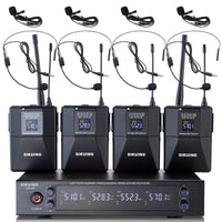 Sikuing 4 Channel Uhf Wireless Microphone System With Lavalier Headset Mics, 4X50 Adjustable Frequencies, Ideal For Karaoke Meet