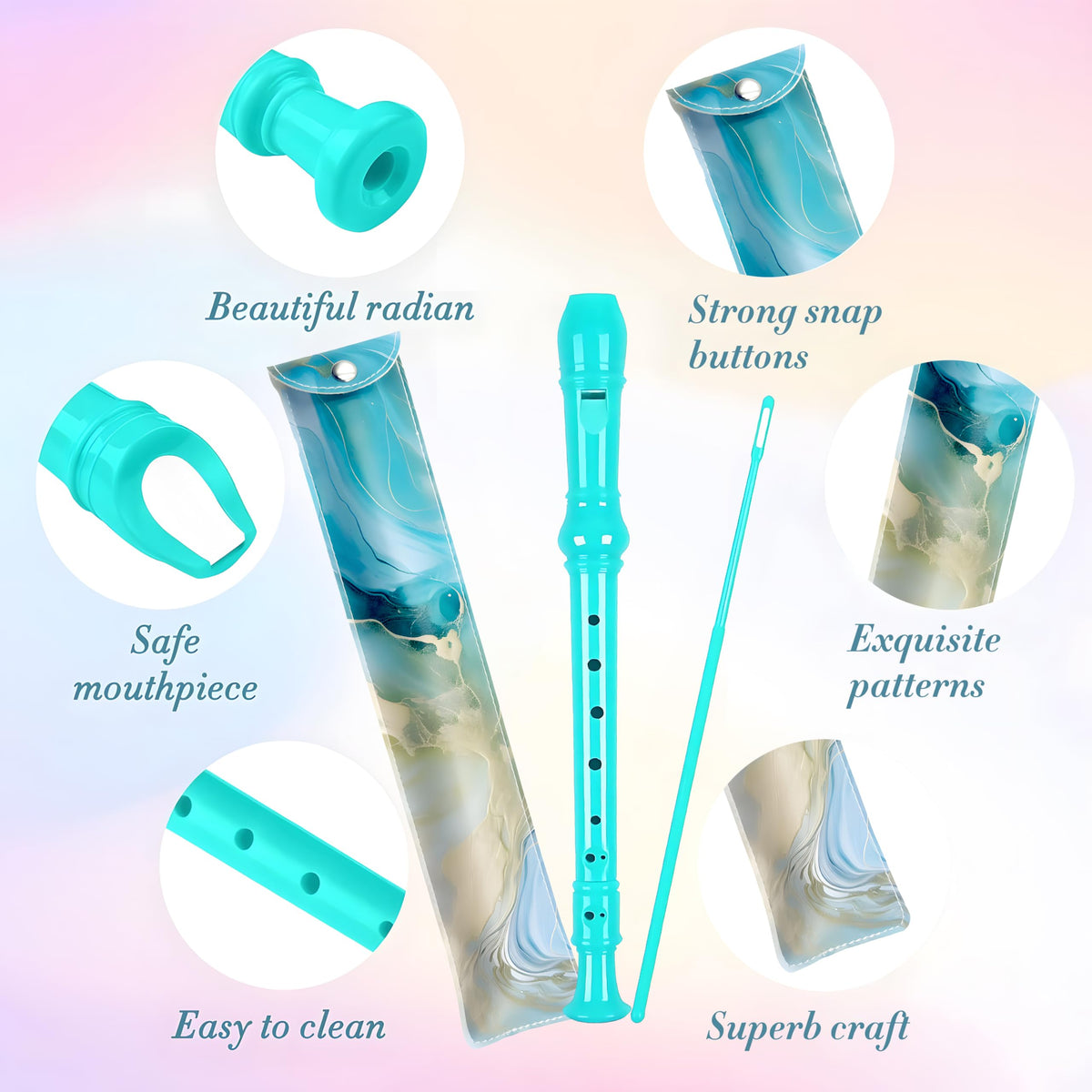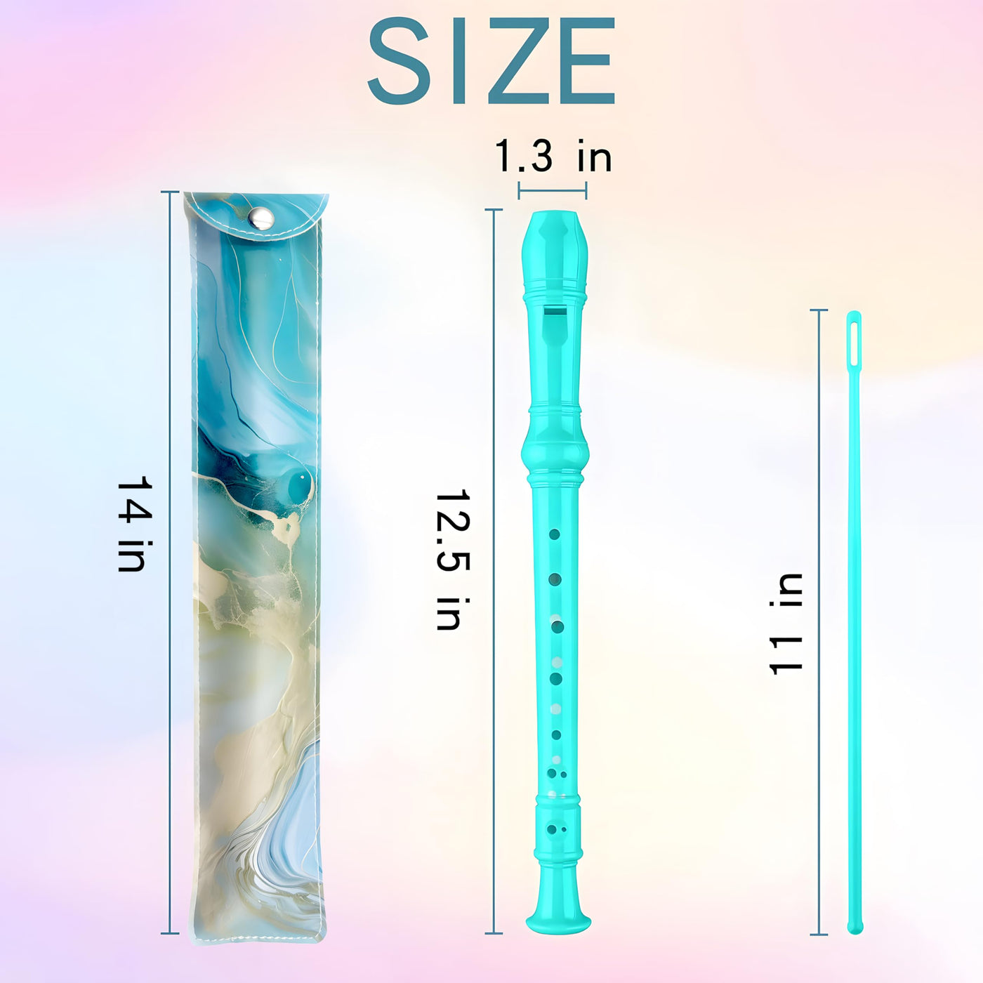 Soprano Recorder For Kids Beginners, German Fingering, C Key, 3 Piece With Cleaning Rod, Bag, Fingering Chart (Green)