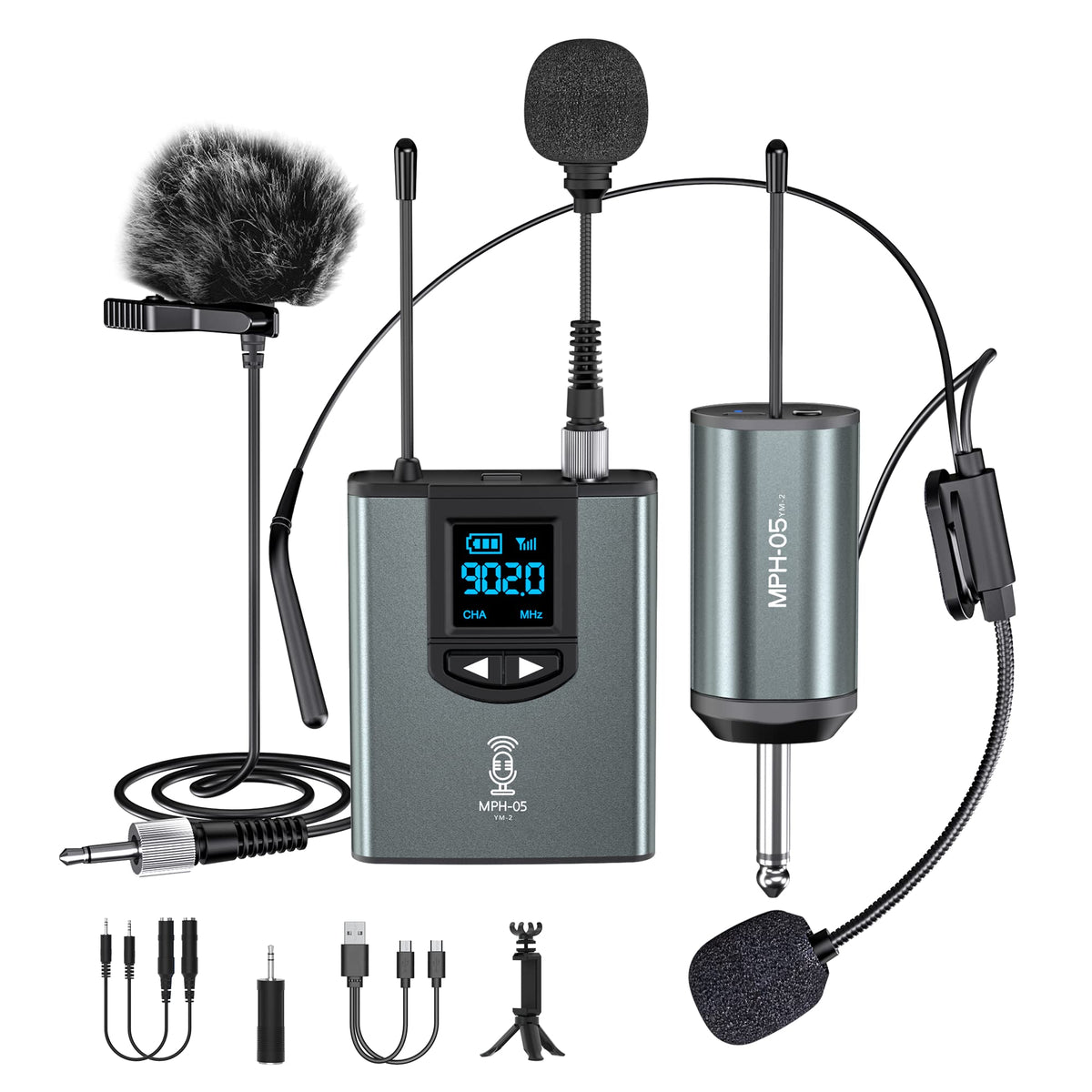 Ym-2 Wireless Headset/Lapel/Stand Microphone System Provides More Using-Choice And Clear Sound. You Can Use This Wireless Mic System To Make Audio Recordings, And Interviews With Phone/Android Smartphones, Tablets, Speakers, Mixers, Amplifiers, Pc, Or Laptops By Using The Adapter Included In The Package. Use 1/4 To 1/8 Trrs (4 Poles) Cable For Smartphones, Tablets, Laptops, And 1/4 To 1/8 Trs(3 Poles) Cable For Dslr Cameras And Desktop Computers. The Uhf Wireless Microphone System Can Be Used In Loudspeaker Amplifiers, Which Is A Trusted Tool For Teachers And Athletic Trainers So That Your Voice Can Be Heard By Everyone In The Classroom. The Mic System Is Portable And Equipped With A Multifunctional Stand For A Smartphone And A Camera. The Wireless Transmitter And Receiver With Built-In 650 Mah Rechargeable Batteries. Which Could Work 6 Hours. There Is A Dual Micro Usb Charging Cable. The Transmitter And Receiver Could Be Charged At The Same Time. Fully Charged Only Needs 2 Hours.