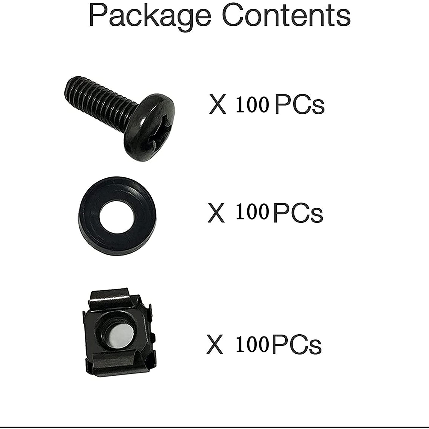 Wang Data 100 Sets M6 Square Hole Hardware Cage Nuts & Mounting Screws Washers For Server Rack And Cabinet (M6 X 16Mm)(Screw+Was