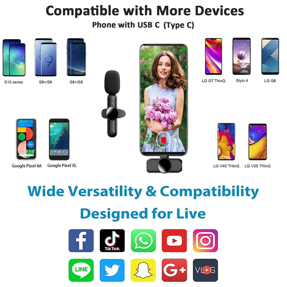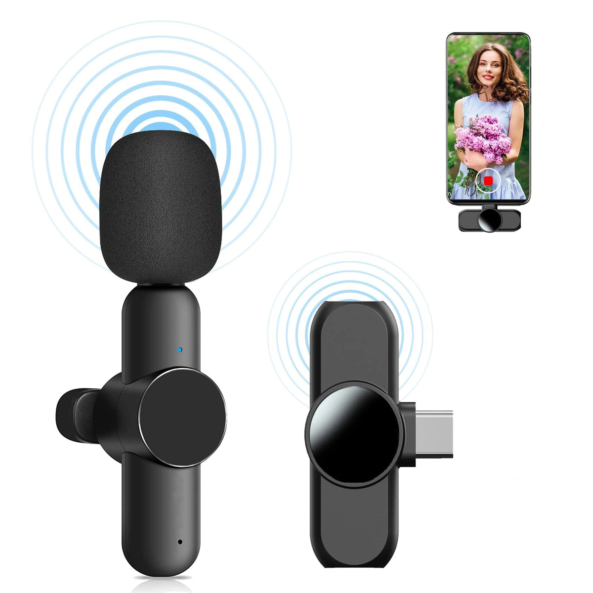Wireless Lavalier Microphone For Android Phone, Plug Play Cordless Omnidirectional Condenser Recording Mic With Noise Reduction