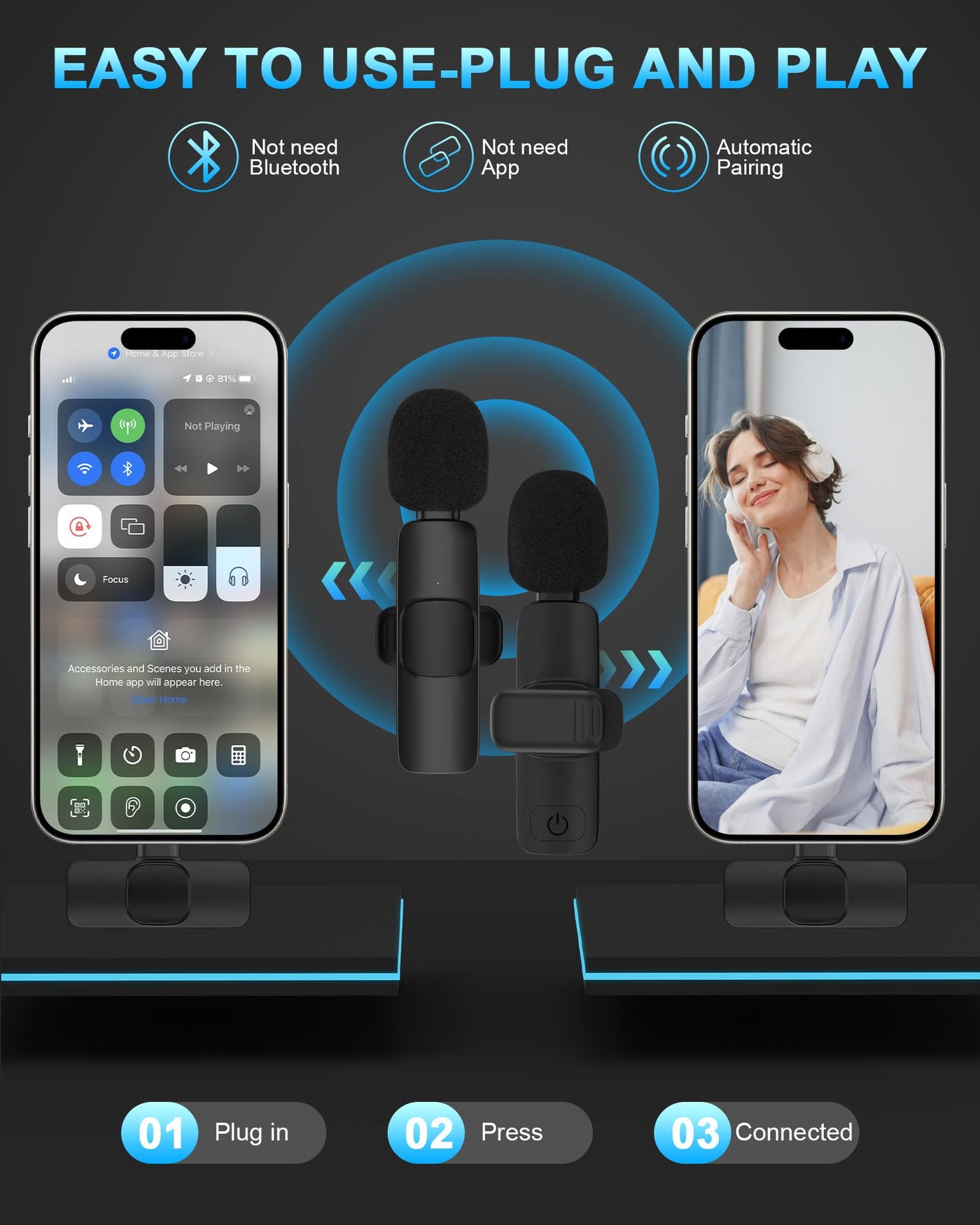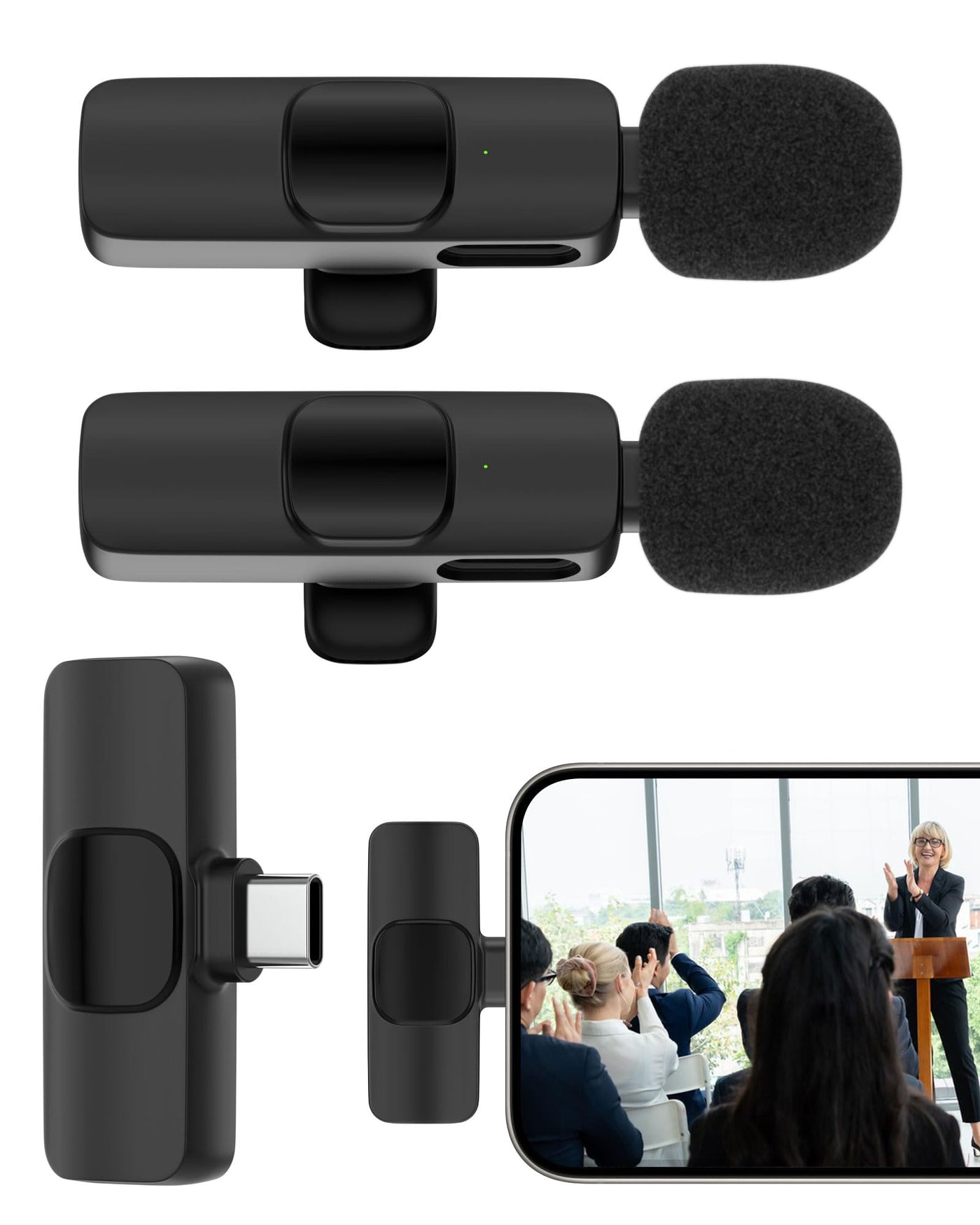 - Wireless Microphone Specification - - Product Type: Wireless Bluetooth Microphones; - Bluetooth Technology: Bluetooth V5.3; - Working Time: >4 Hours; - Charging Time: 1 Hour; - Audio Receiver Distance: Barrier-Free 65Ft; - Microphone Battery Capacity: 60 Amp; - Signal-To-Noise Ratio: 95Db; - Active Noise Reduction - Easy To Carry - Packaging Size: 12.1*8.1*3.1Cm - Microphone Featuring - - Stable Connection Distance - - Wireless Microphones With A Stable Connection Distance Of Up To 65 Ft, Freely Moving Between The Phone And The Mics. - Upgraded Bluetooth 5.3 - - The Bluetooth Microphones Are Equipped With The Comprehensive Upgrade Bluetooth 5.3 Chip, Only Need 1 Seconds To Pair. - Tight Connect On Your Lavalier - - Only 0.23Oz Lightweight To Ensure Feeless Wearing A Lapel Microphone With Tight Clip . - Package Content - - 2* Wireless Mic Transmitters With Usb C Charging Port; - 1* Microphone Receiver With Usb-C Port; - 1* Usb C Cable For Lav Mics; - 12 Month Hassle Free Warranty.