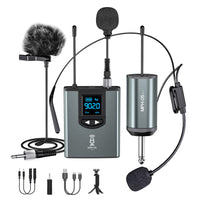 Wireless Microphone System Headset Mic/Stand Mic/Lavalier Lapel Mic With Rechargeable Bodypack Transmitter & Receiver 1/4'' Outp