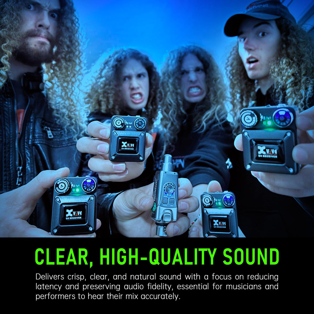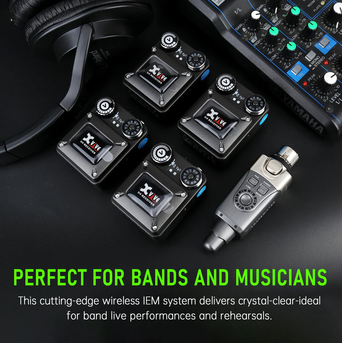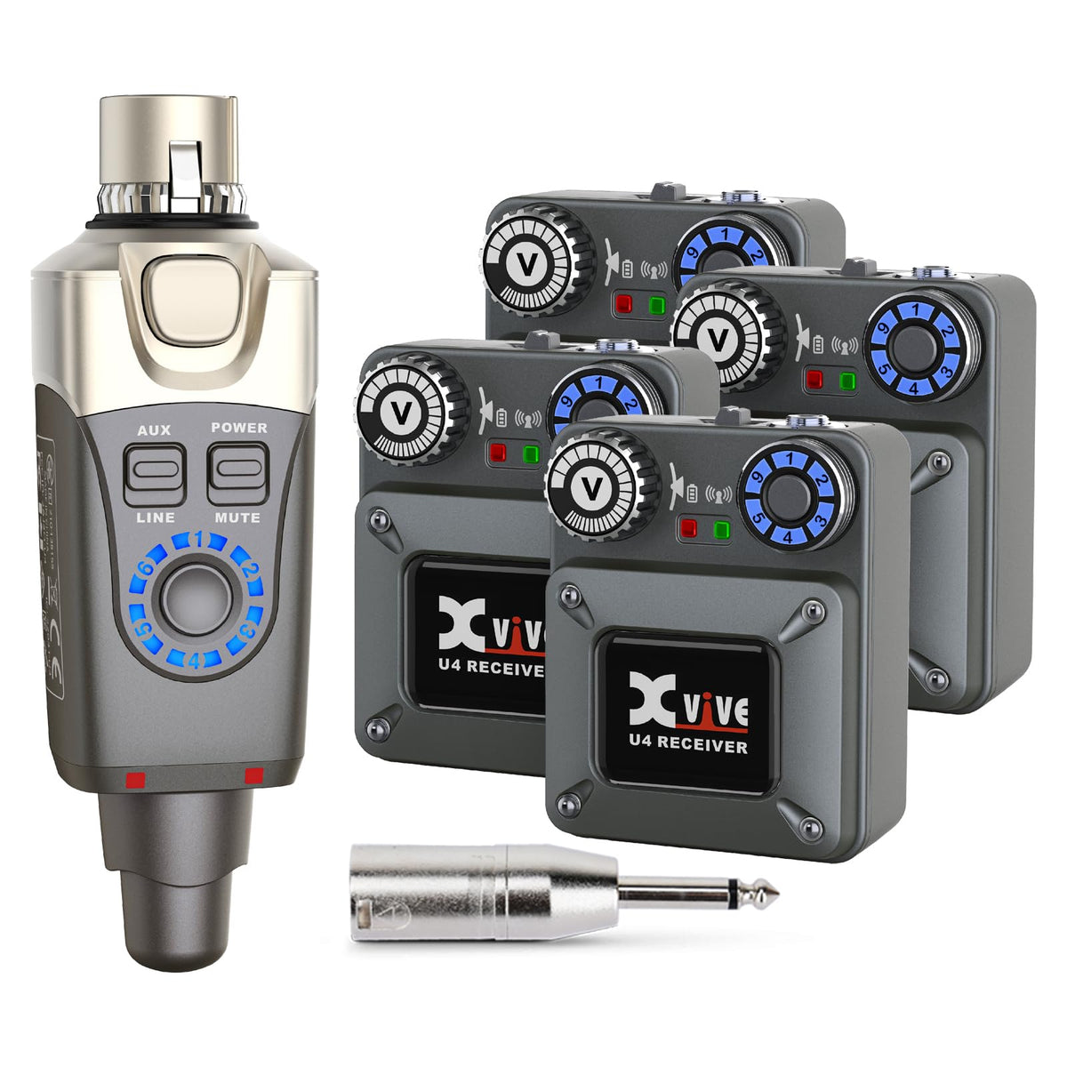 Xvive U4R4 Wireless In Ear Monitor System Professional Iem System,1 Transmitter And 4 Beltpack Receiver For Studio, Band Rehears