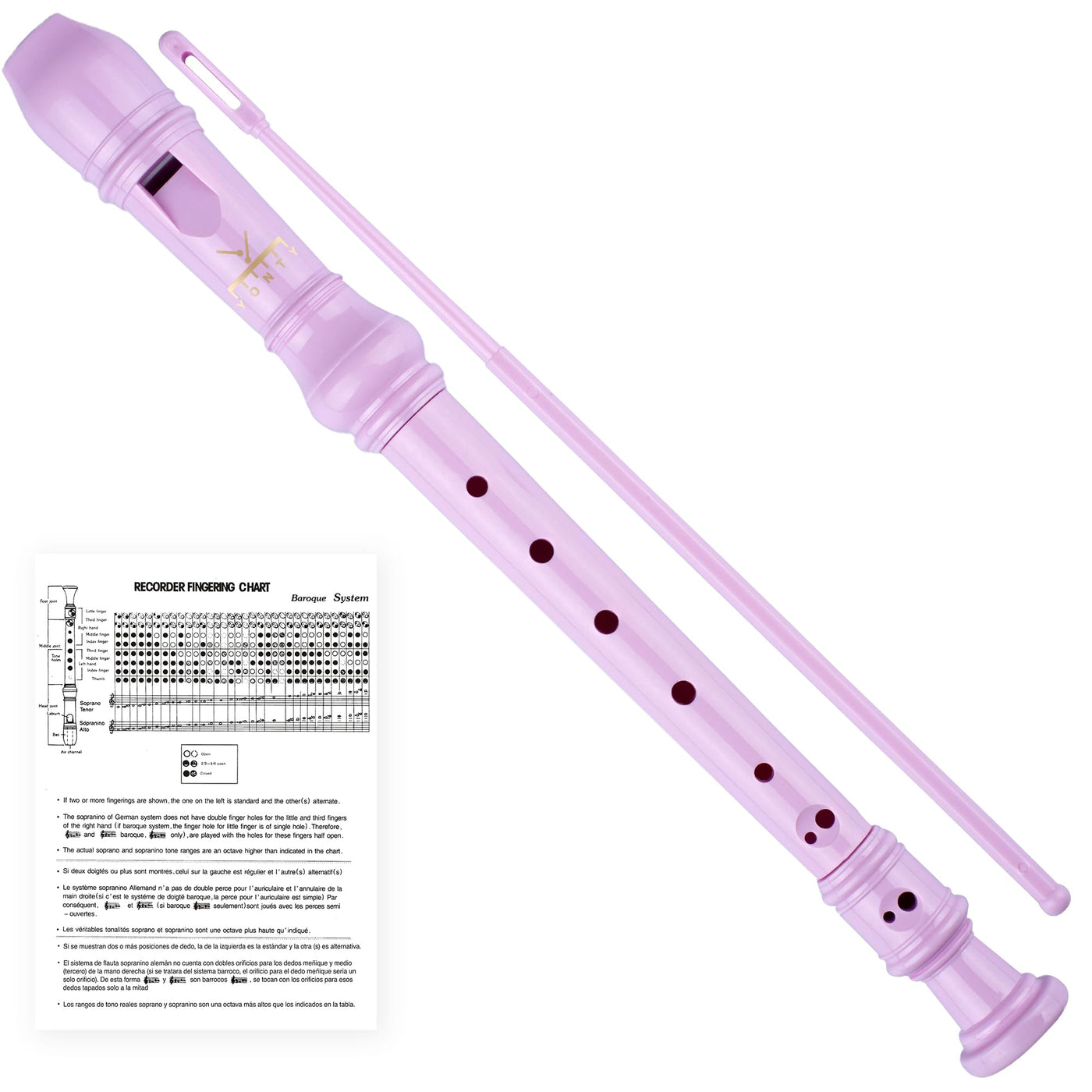 YONTY Soprano Recorder 8-Hole Instrument for Kids Beginners, Baroque German Style C Key Kids Flute with Cleaning Rod & Case Bag for School Education Home Entertainment