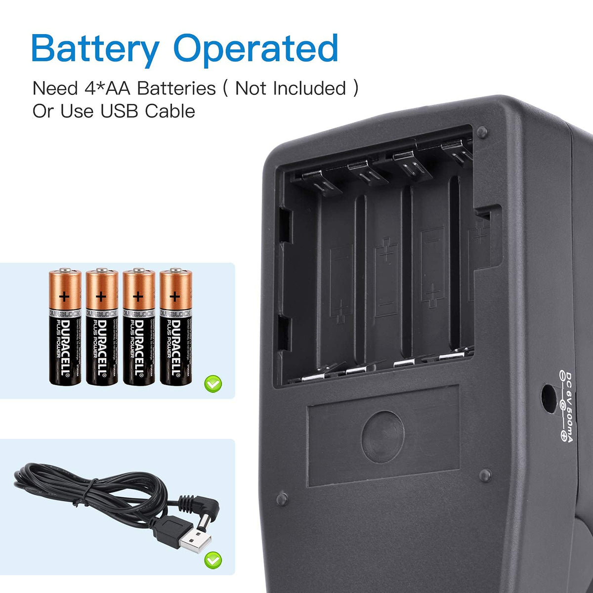 Q: Can I use the Slide and Film Viewer with batteries, and what power options are available?A: The viewer can be powered either by USB or with 4 AA batteries (not included). This flexibility makes it portable and convenient for use anywhere.