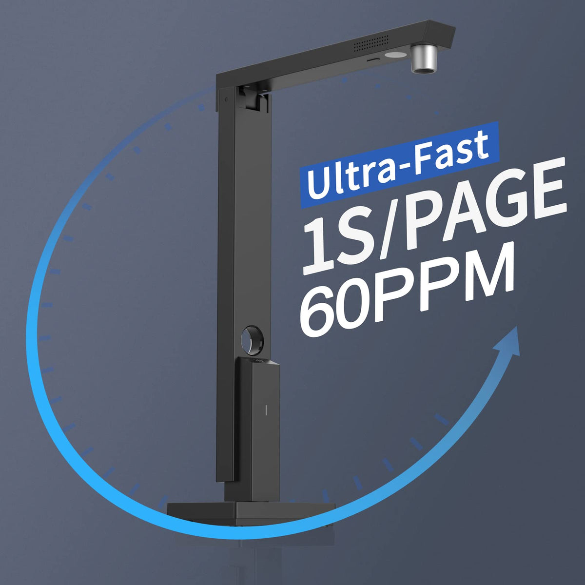 Q: How fast does the CZUR Lens1200 Pro scan documents?A: The CZUR Lens1200 Pro features an ultra-fast scanning speed of just 1 second per page, allowing for efficient document processing.
