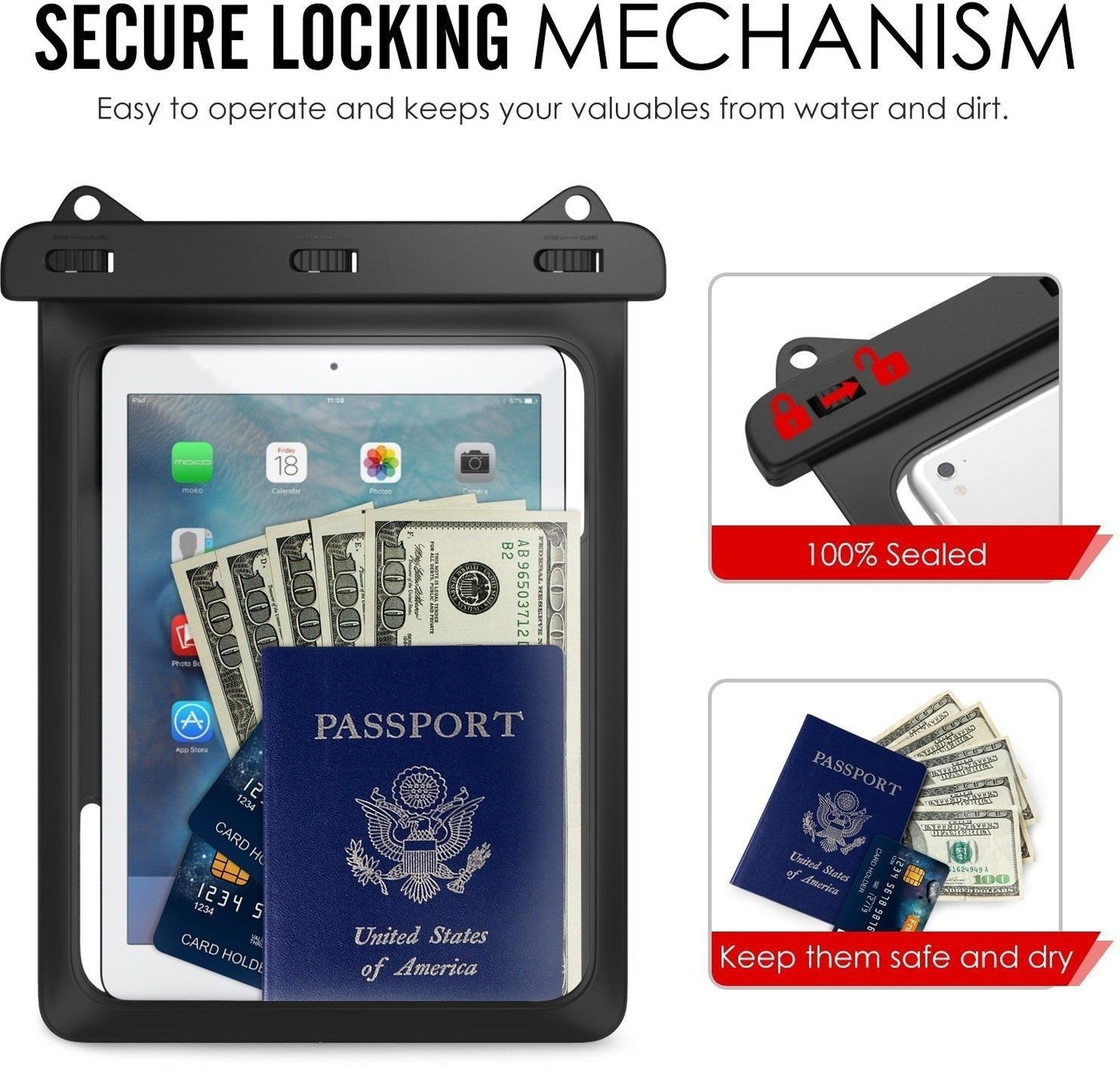 Never again have to worry about water damages of your precious tablets on your swimming, diving, drifting, surfing, mountaineering and fishing trips