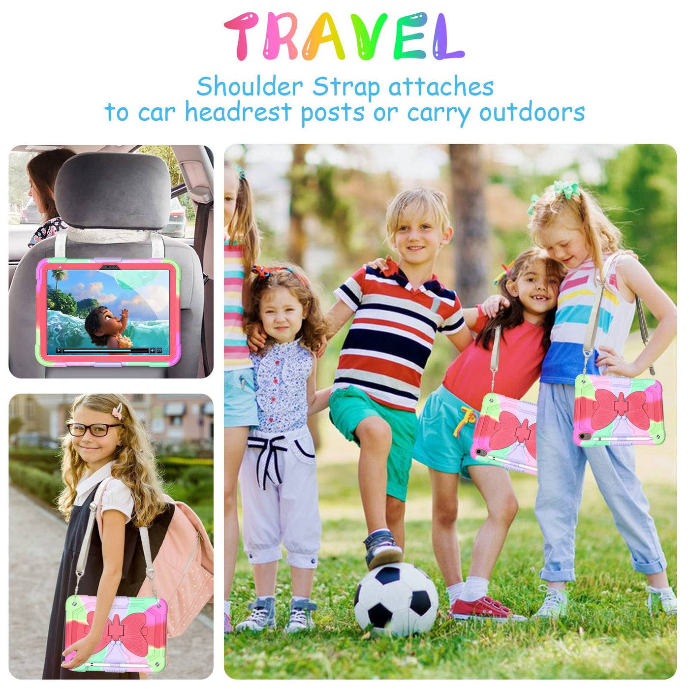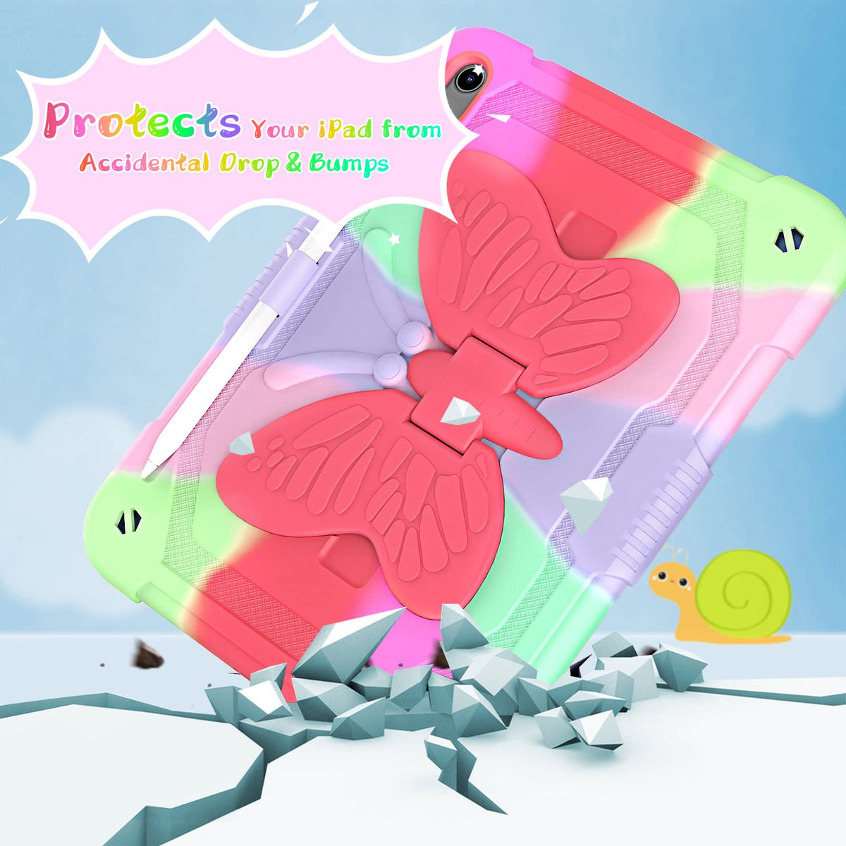 Ambison Case For Ipad 10Th Generation 2022 10.9 Inch For Kids Girls,With 9H Tempered Glass Screen Protector, Rugged Heavy Duty Shockproof Protective Case With Butterfly Stand,Carrying Strap Rose Red