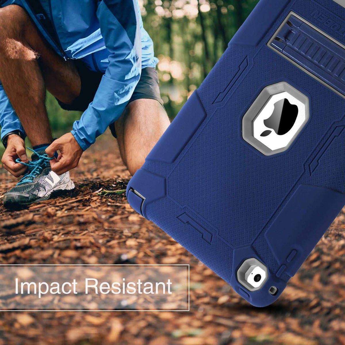 Bentoben Case For Ipad Air 2, Navy Blue/Gray, Shockproof, Protective, Rugged, Triple Layer, Drop Proof, Non Toxic, Durable, Port