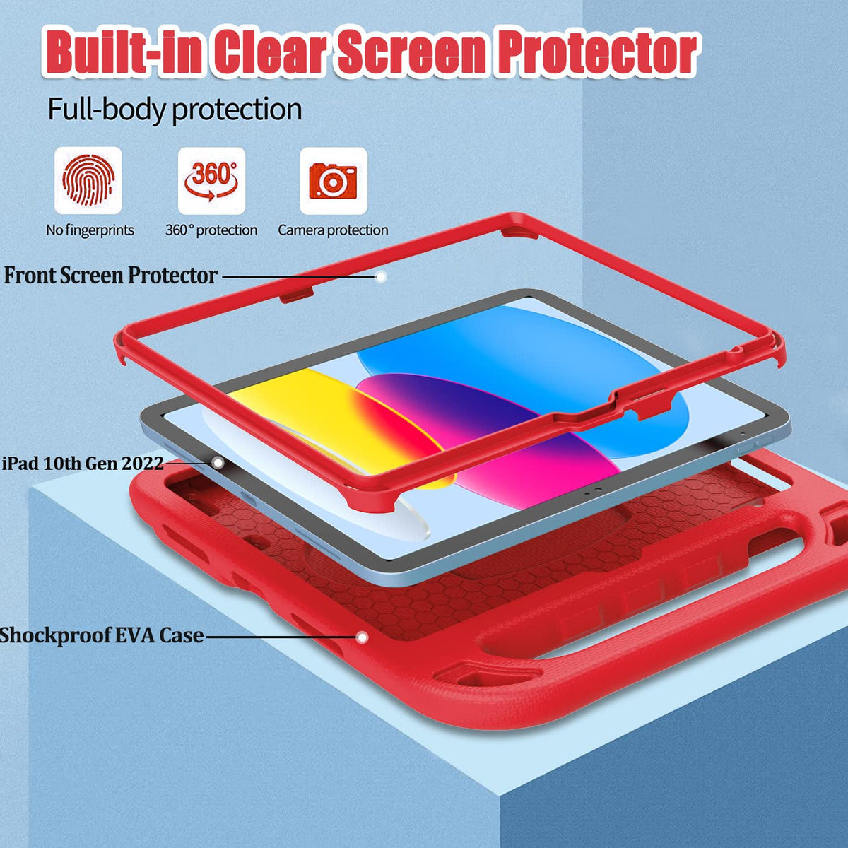 Bmouo Kids Case For Ipad 10Th Generation 10.9 Inch 2022 With Built In Screen Protector, Shockproof Light Weight Covertible Han