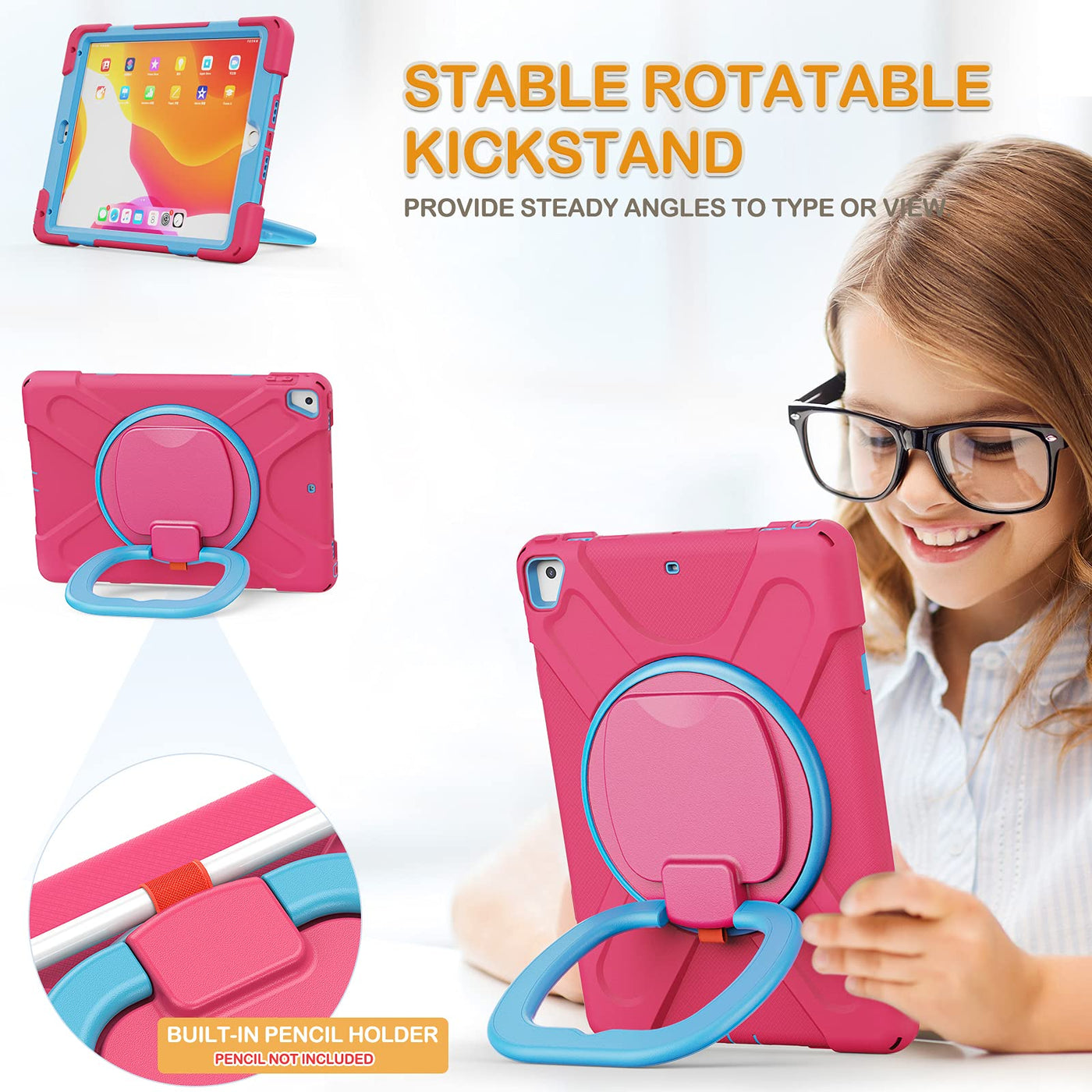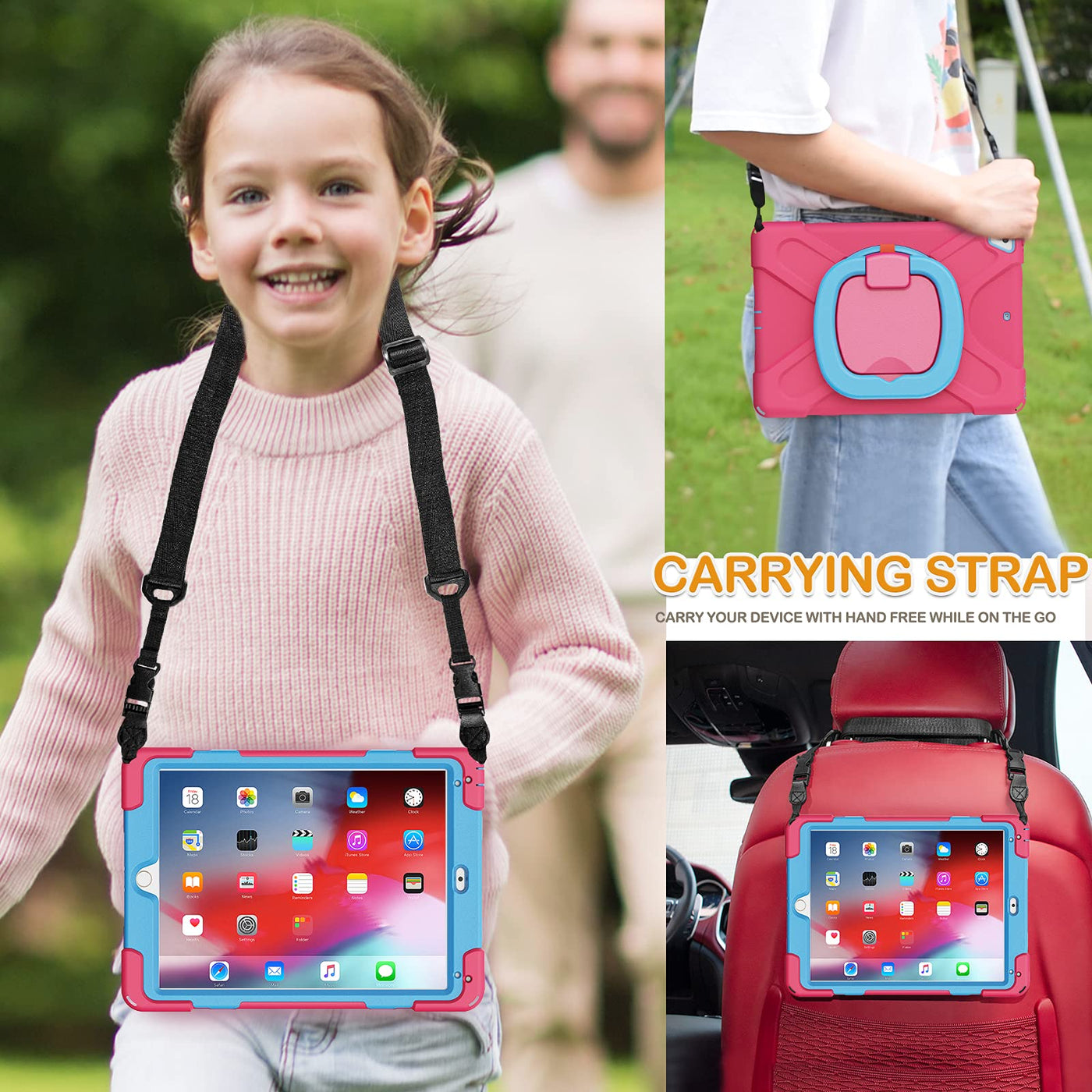 Braecn Case For Ipad 6Th/5Th Generation W/Pencil Holder, 360 Degree Multi Function Grip, Stable Kickstand, Carrying Strap, 3 Lay