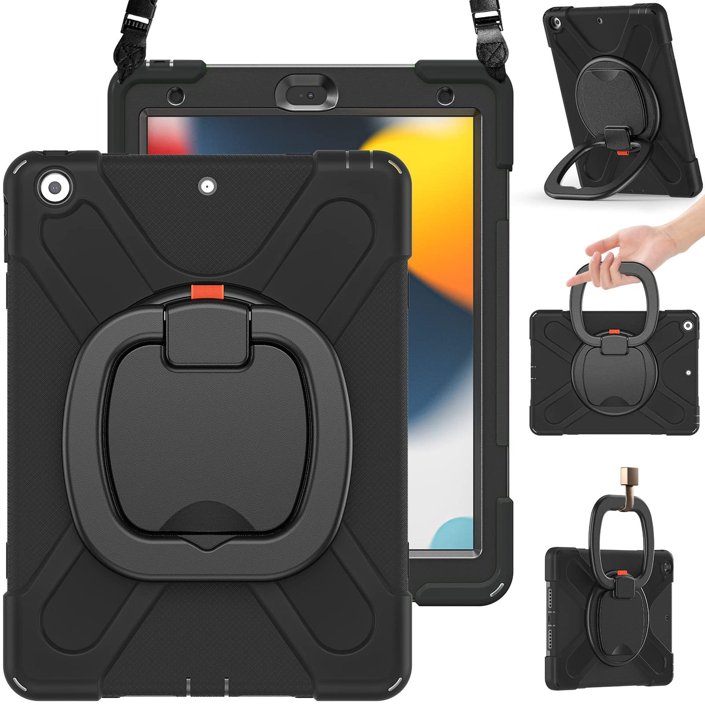 Braecn Case For Ipad 9Th Generation 2021 10.2 Inch Hybrid Rugged Shockproof Silicone Cover With Kickstand, Pencil Holder, Handle