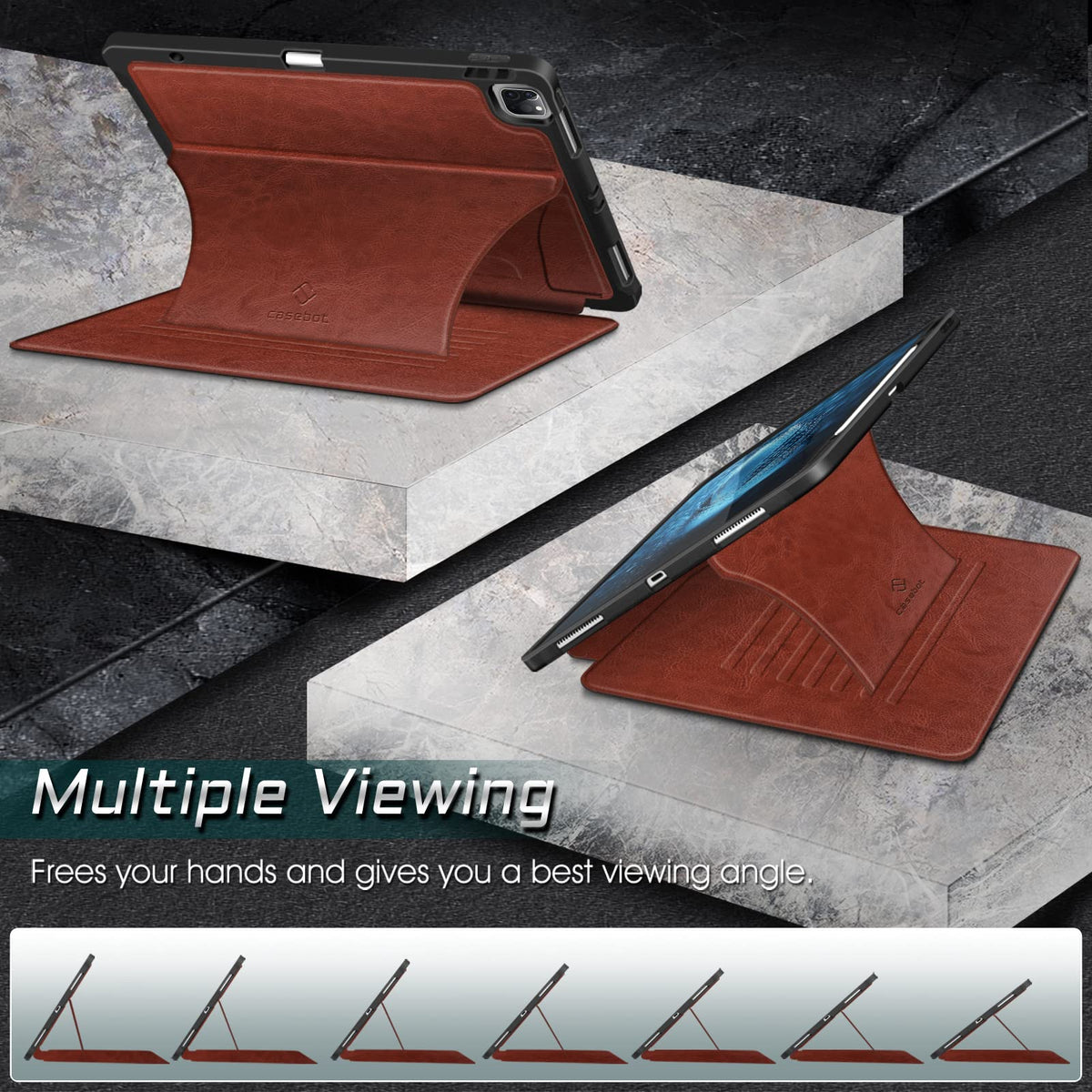 Casebot Magnetic Case For Ipad Pro 12.9 Inch 6Th Generation 2022, Multiple Angle Shockproof Rugged Stand Case, Soft Tpu Back Cover W/Pencil Holder, Also Fit Ipad Pro 12.9' 5Th/4Th/3Rd Gen, Brown