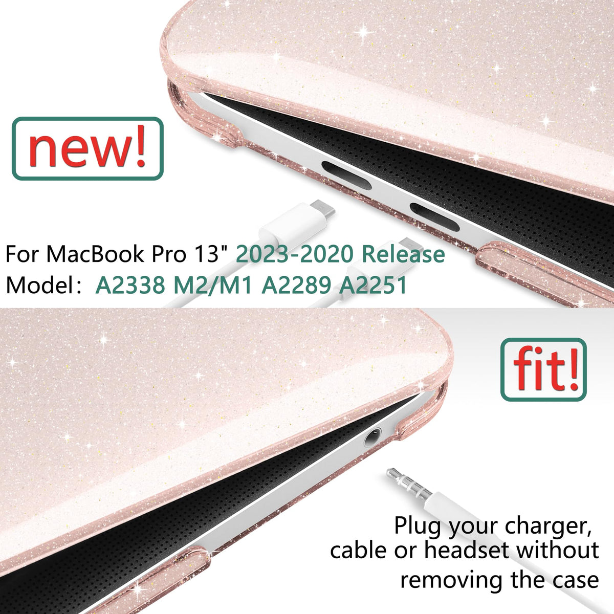 Dongke Bling Bling Sparkly Black Case Product Information Overview The Case Is Smooth Touching Feel Good. High Quality Case Will Protection Your Device From Scratches And Abrasion Precise Cutouts Allow Full Access To All Ports And Features Safe Hear Dissipation/Disbursement. Design With Ventilation Holes At The Bottom Piece Part Of The Cover, And Also With Four Raised Taps. Only Compatibility With Macbook Pro 13 Inch 2023 2022 2021 2020 Released With Retina Display & Touch Bar & Touch Id Models: A2338 (M2/M1) / A2251 / A2289 Case Not Compatible With Macbook Pro 13 Inch With Touch Bar Model A2159 / A1989 / A1706 / A1708 Release 2019 2018 2017 2016 Case Not Compatible With New Macbook Air 13 Inch Model A2337 M1/ A2179 / A1932 Release 2021 2020 2019 2018 Case Not Compatible With Macbook Air 13 Inch Model A1369 / A1466 Release 2017-2012 Case Not Compatible With Macbook Pro 13 Inch With Retina Display Model A1502 / A1425 2015-2012 Case Not Compatible With Old Macbook Pro 13 Inch With Cd-Drive Model A1278 2012-2008 What'S In The Box For Macbook A2338 M1 / A2251 / A2289 Case + Keyboard Cover + Screen Film + Usb Port Protectors