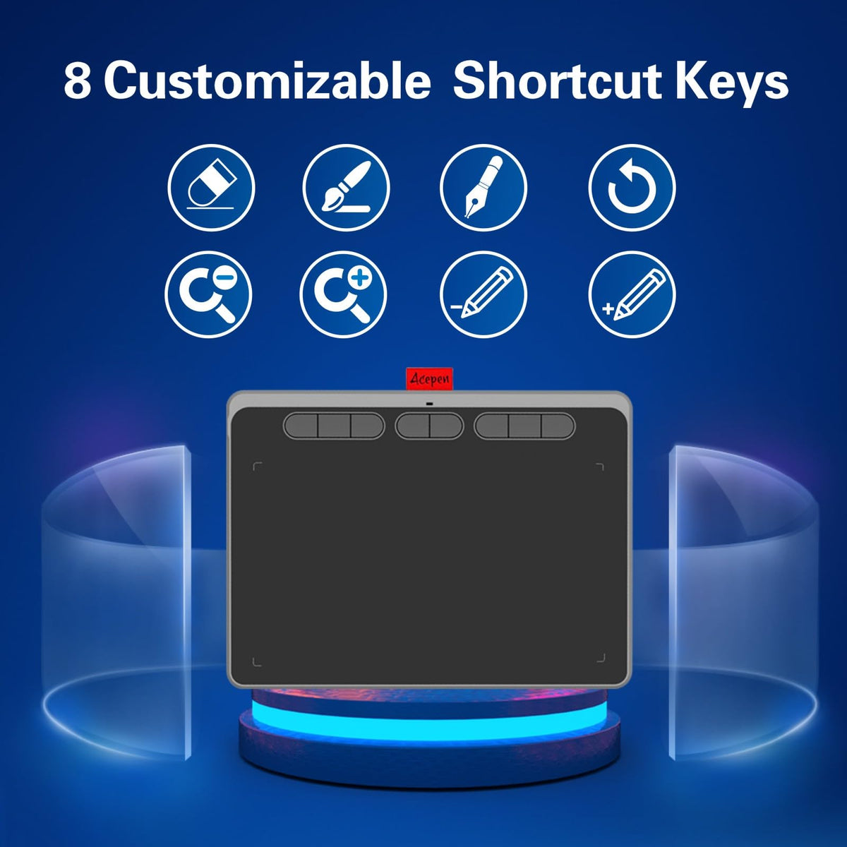 Drawing Tablet Acepen Graphics Tablet With Battery Free Stylus 8192 Pressure Sensitivity 8 Hot Keys, 9 X 6 Inch Pen Tablet For D