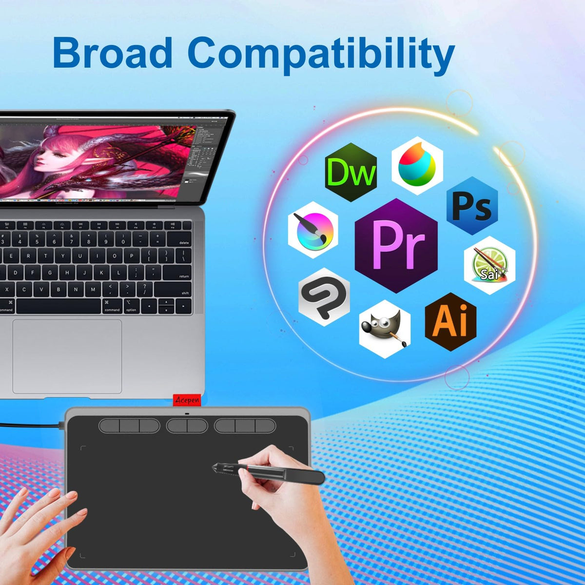 ?Precision Graphics Tablet?Acepen Art Tablet Is Designed With Slim And Compact Sized With An Active Area Of 9X5 Inch Offering Perfect Creative Space For Limited Desktop Areas. It Is Easy To Carry Out And Always Ready For Your Any Creation Whenever And Wherever. | ?Accurate Pen Performance?New Pen Stylus Technology Supports 8192 Levels Of Pressure Sensitivity,