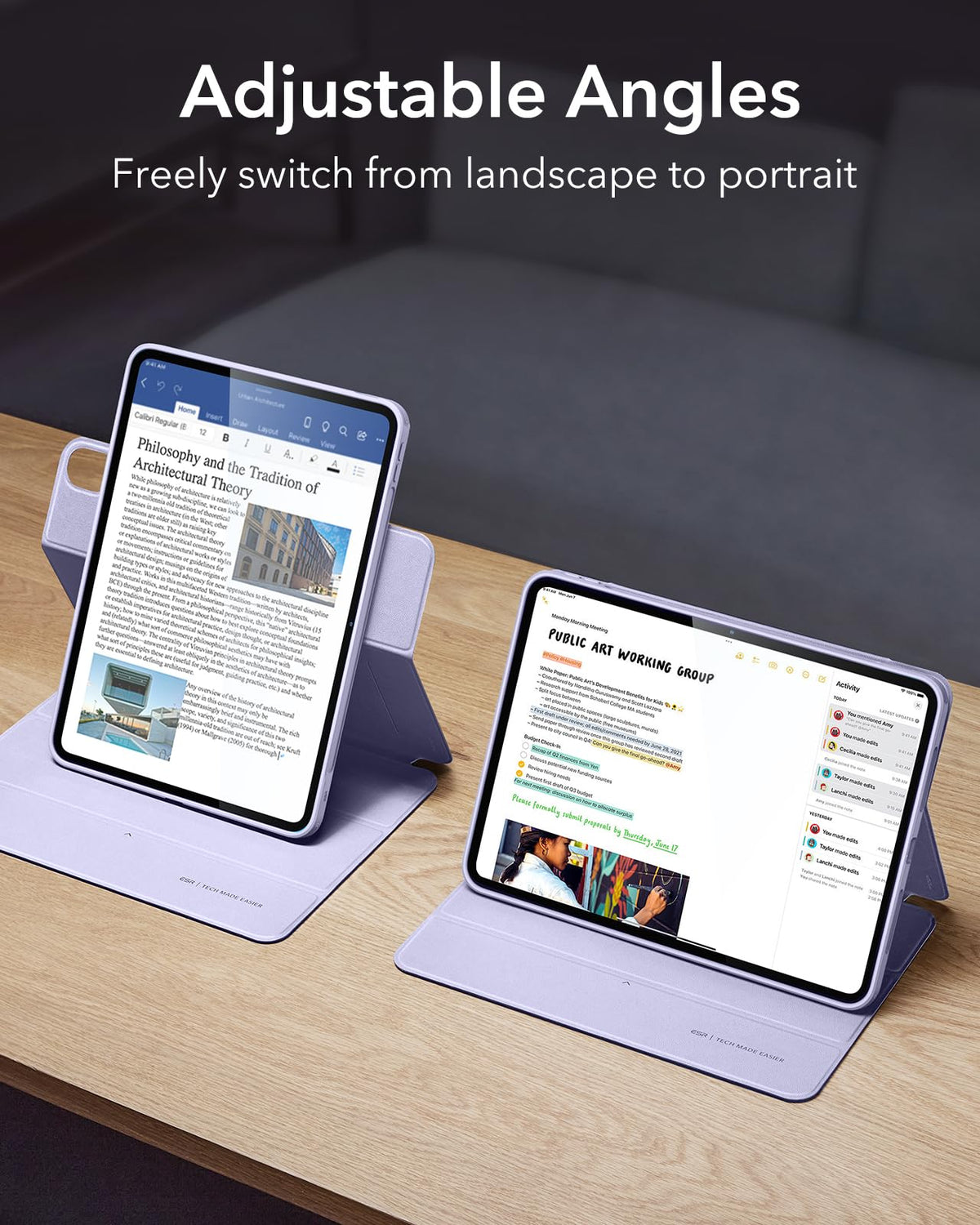 Esr For Ipad Air 11 Inch Case 2025 M3/M2, Ipad Air 7Th/6Th/5Th/4Th Gen Case (2024/2022/2020) 10.9 Inch With Pencil Holder, Removable Magnetic Cover, Vertical Stand, Rebound 360 Series, Light Purple