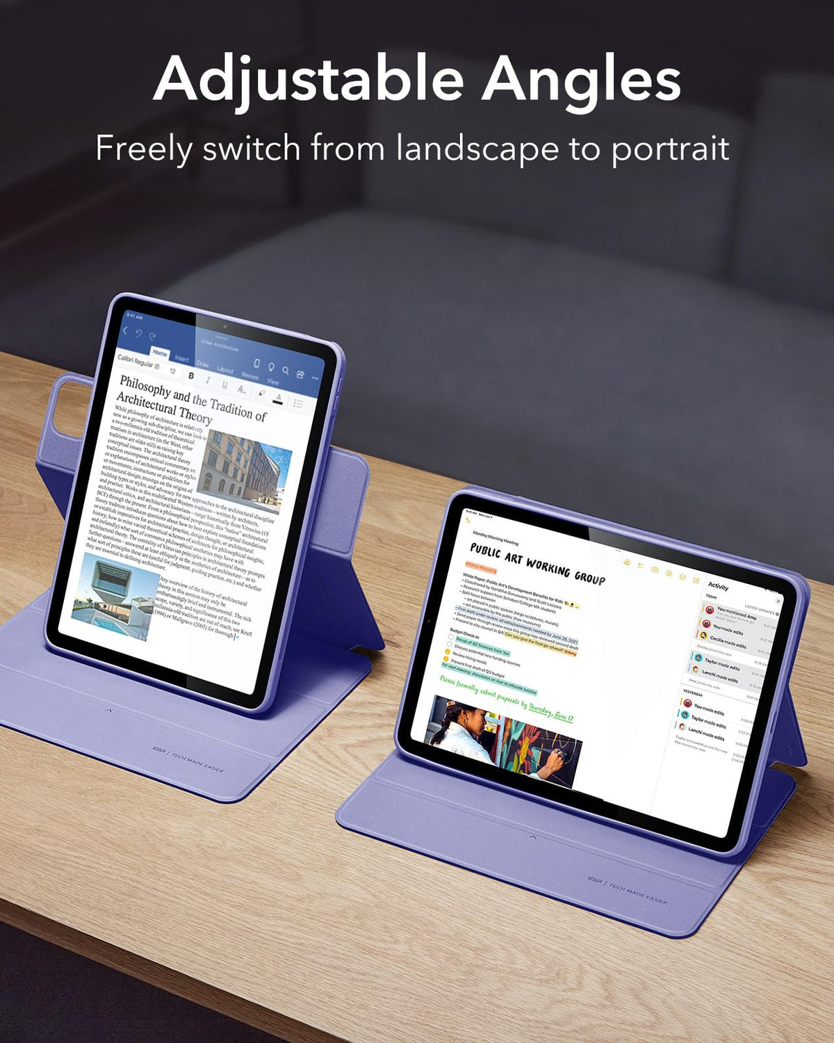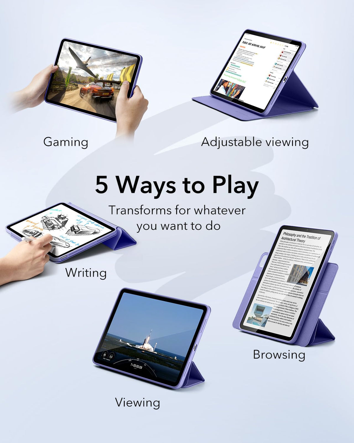 Esr For Ipad Air 11 Inch Case (2025) M3/M2, Ipad Air 7Th/6Th/5Th/4Th Generation Case (2024/2022/2020) 10.9 Inch With Pencil Holder, Removable Magnetic Cover, Vertical Stand, Rebound 360 Series, Purple