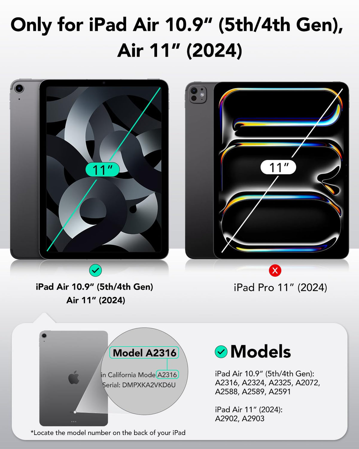 Esr For Ipad Air 11 Inch Case M2 2024, Ipad Air 6Th/5Th/4Th Gen(2024/2022/2020), Slim&Light, Yellowing Resistant, Transparent Back Cover, Supports Pencil Pro&Pencil (Usb C), Zero Series, Clear Purple