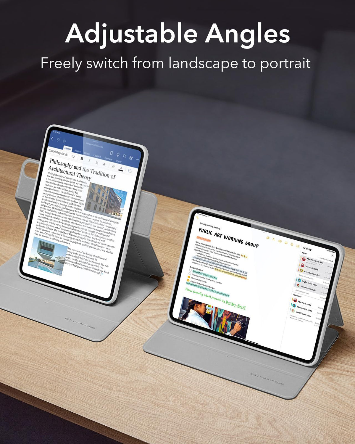 Esr For Ipad Air 13 Inch Case M2(2024), Ipad Air 13 Case With Pencil Holder, Removable Magnetic Cover, Vertical Stand, Fully Supports Pencil Pro And Pencil(Usb C), Rebound 360 Series, Grey