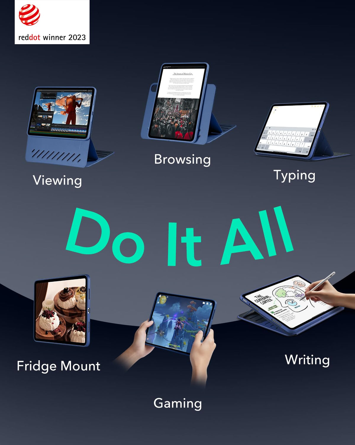 Esr For Ipad Air 13 Inch Case M2(2024), Ipad Air 13 Rotating Case With Removable Magnetic Cover, Adjustable Portrait/Landscape Stand With Raised Screen View, 9 Standing Angles, Shift Series, Blue