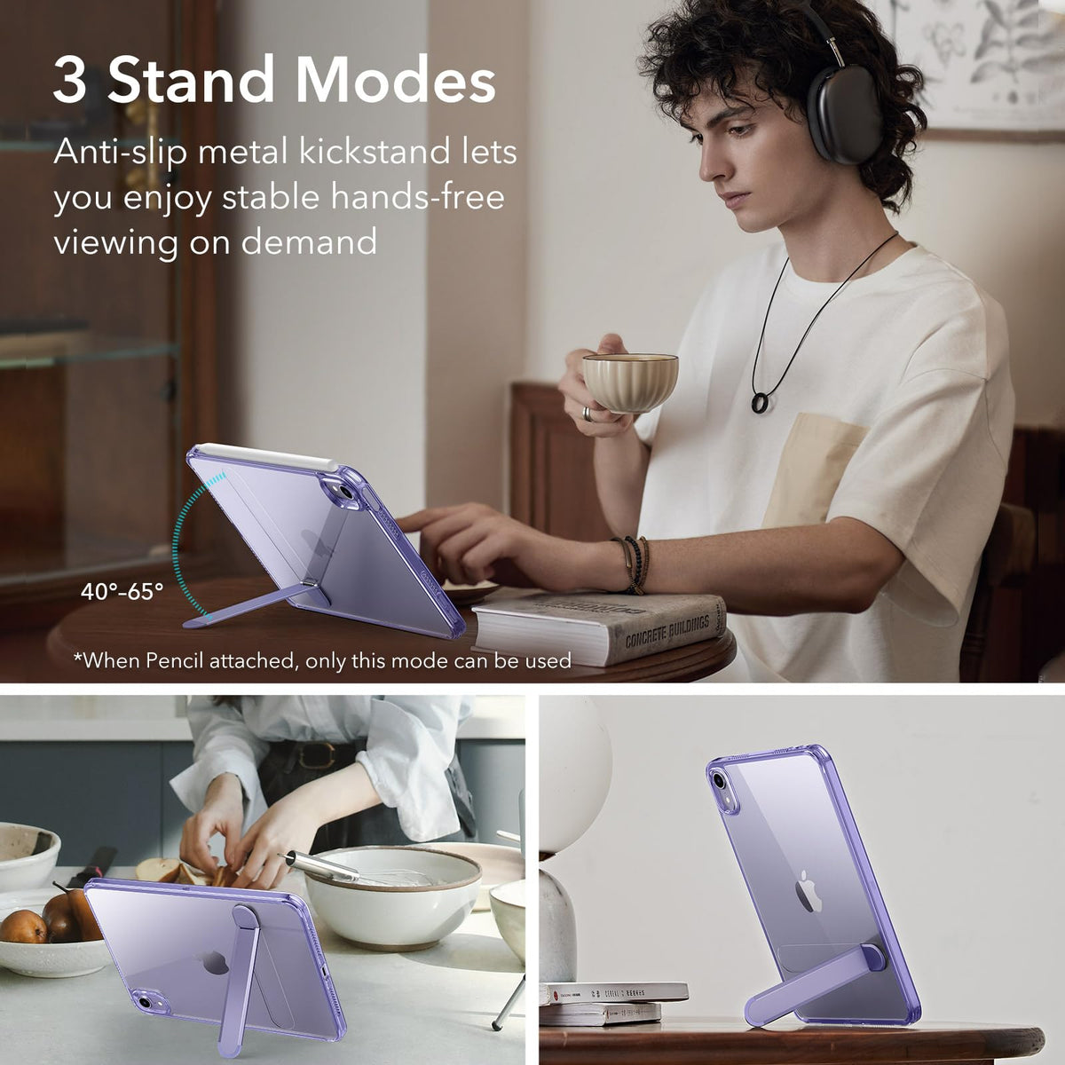 Esr For Ipad Mini 7 A17 Pro Case, Ipad Mini 7Th/6Th Generation Case With Stand(2024/2021), 3 Stand Modes, Slim And Light, Drop Safe, Supports Pencil Pro & Pencil (Usb C), Purple Clear
