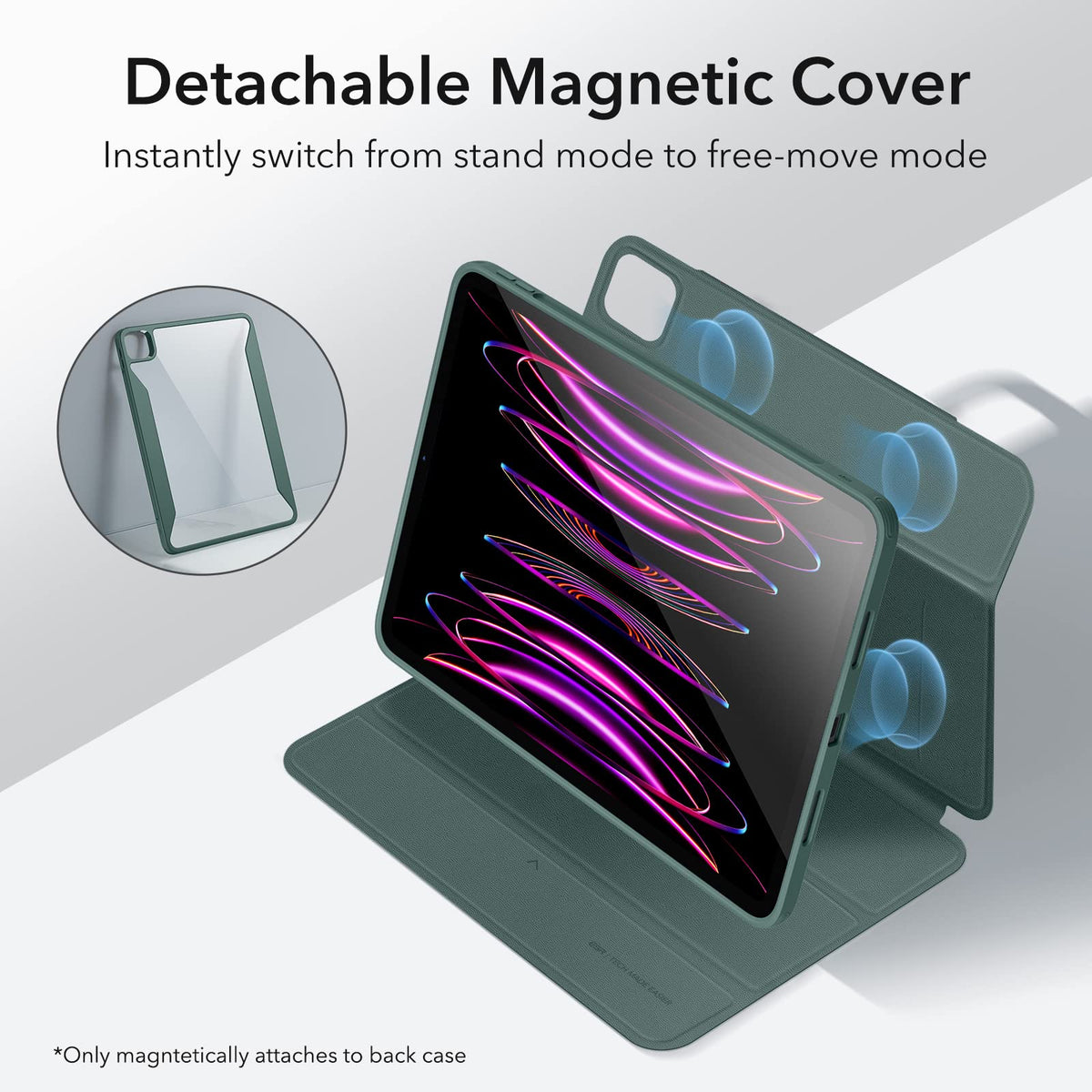 Esr For Ipad Pro 12.9 Inch Case (2022/2021), Ipad Pro 12.9 Case 6Th/5Th Generation With Pencil Holder, Detachable Magnetic Cover, Vertical Stand, Auto Wake/Sleep, Rebound 360 Series, Forest Green