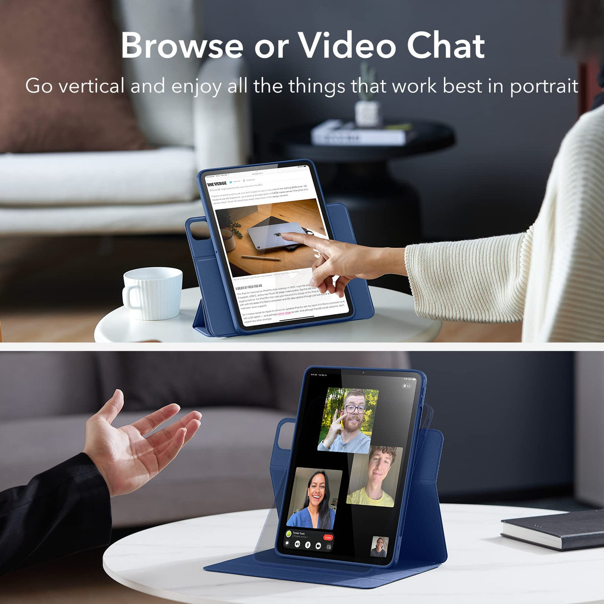Esr For Ipad Pro 12.9 Inch Case (2022/2021), Ipad Pro 12.9 Case 6Th/5Th Generation With Pencil Holder, Detachable Magnetic Cover, Vertical Stand, Auto Wake/Sleep, Rebound 360 Series, Navy Blue
