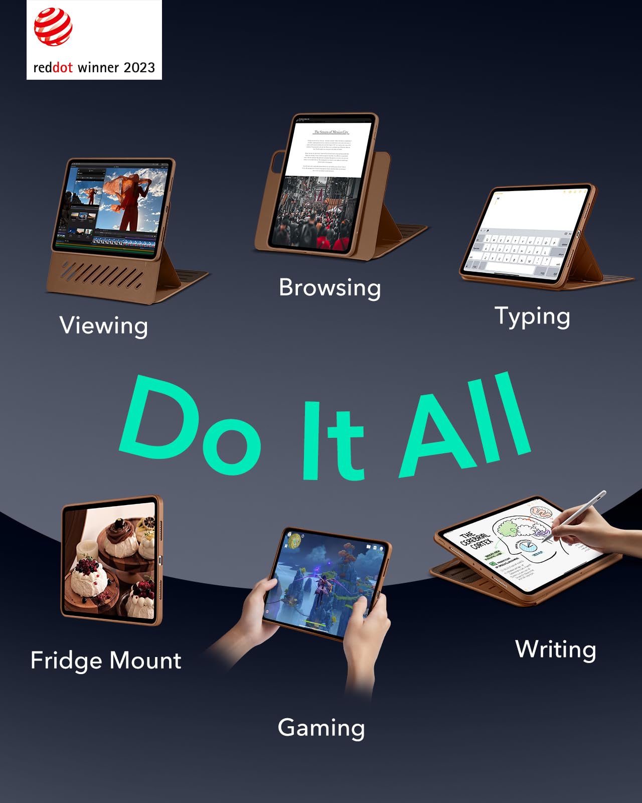 Esr For Ipad Pro 13 Inch Case M4(2024), Ipad Pro 13 Rotating Case With Removable Magnetic Cover, Adjustable Portrait/Landscape Stand With Raised Screen View, 9 Standing Angles, Shift Series, Brown