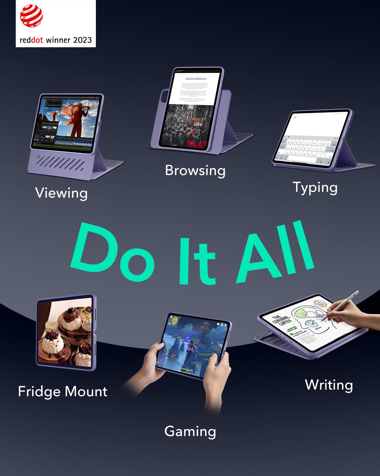 Esr For Ipad Pro 13 Inch Case M4(2024), Ipad Pro 13 Rotating Case With Removable Magnetic Cover, Adjustable Portrait/Landscape Stand With Raised Screen View, 9 Standing Angles, Shift Series, Purple