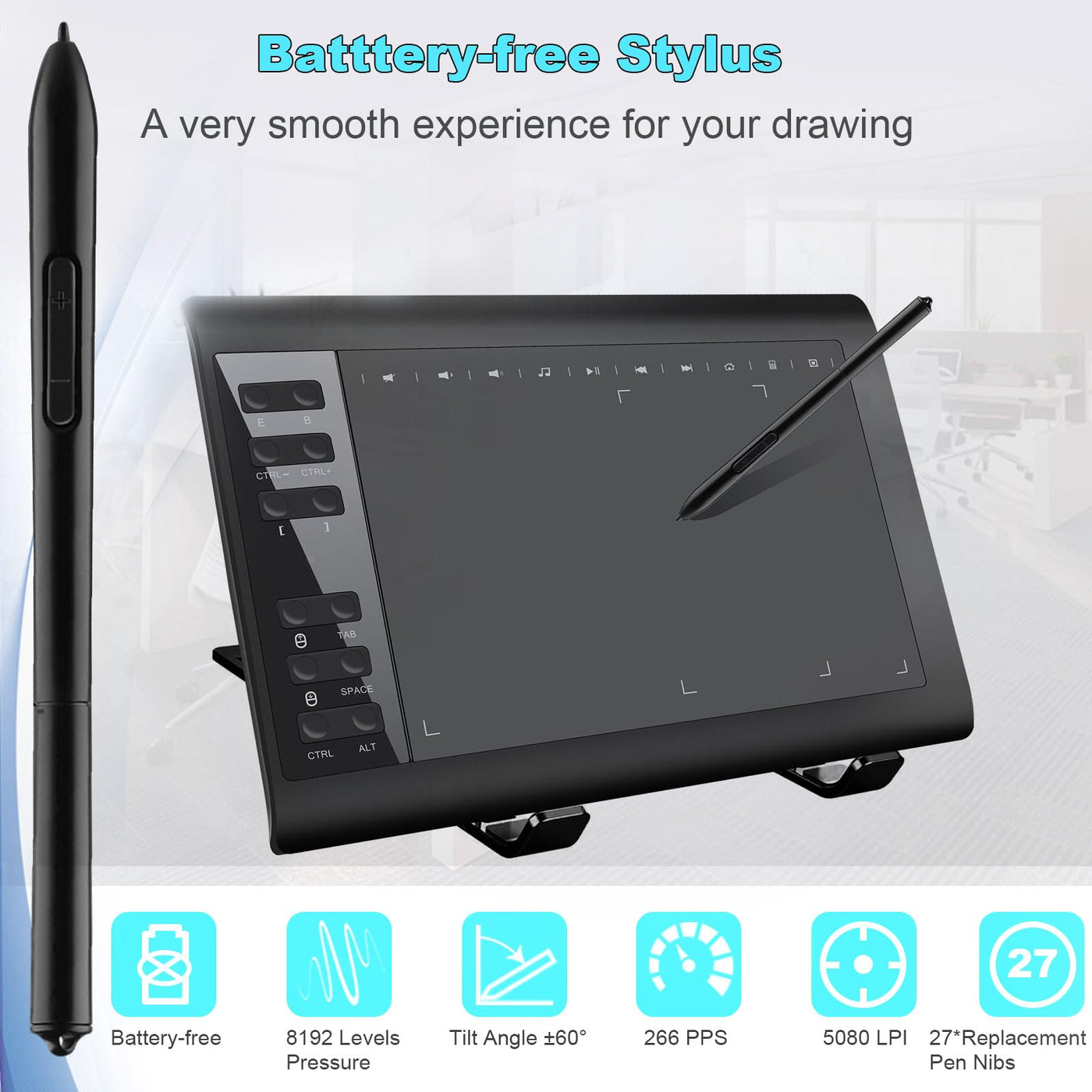 Graphics Drawing Tablet Terow,10X6 Inch Digital Drawing Tablet With Bracket And 8192 Levels Stylus For Pc/Mac/Android 5.0 For Drawing And Online Teaching,Drawing Pad Drawing Borard And Computer Tablet