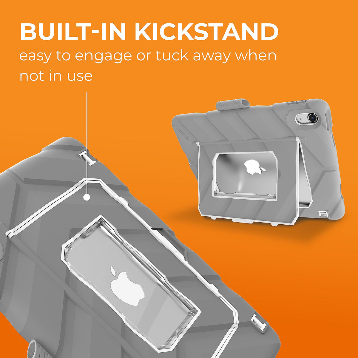 Hideaway For Ipad (10Th Gen) Is A Rugged, Durable Ipad Case Featuring A Shockproof, Built-In Kickstand And Protective Screen Overlay To Prevent Liquids, Dust, And Dirt From Damaging The Ipad. The Magnetized Stand Ingeniously Hides Away Into The Silicone Back And Can Easily Be Engaged With A Simple �Clip And Click� That Keeps It Safe And Secure When Not In Use. Rubberized Bumpers Surround The Case Edges With Our Signature Tread Design And Reinforced Corners To Maximize Shock Absorption. As Always, This Case Is Drop Tested To Protect Against Falls Up To Four (4) Feet, Exceeding Military Drop-Test Standards For Maximum Protection Making Hideaway For Ipad (10Th Gen) The Perfect Ipad Case For In The Classroom Or Out In The Field.