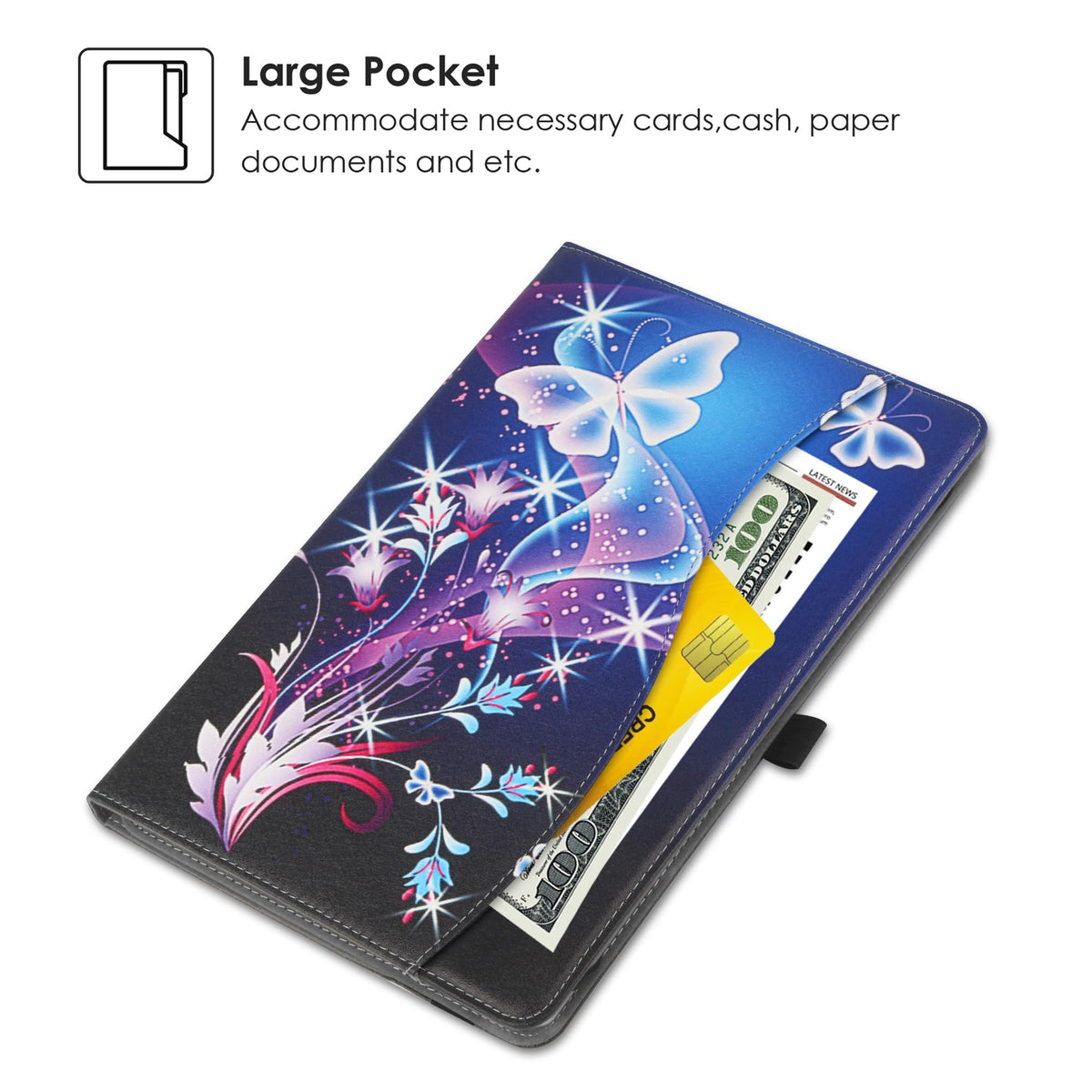 ?Perfect Compatibility ?-10 Inch Tablet Case Android With All 9 -10 .5Inch Tablets, Such As Galaxy Tab A8 A7 Tablet,S6 Lite ,Oppo Pad Air,Dragon Touch A1X Plus, A1X, A1, M10X, E97, A93, Coopers, Awow, Zonko, Pritom M10, Zzb, Neutab N9 Pro, N10, Alldaymall, Polaroid, Polatab, Prontotec, Valuepad Vp112-10, Goldengulf, Fasttouch, Tagital, Deerbrook, Simbans, Acer, Toshiba, Etc. ???.(No Back Camera Opening; Not Support Auto Sleep/Wake For Any Tablets)???Please Check Yours Device Before Buying. | ? High Quality Material ?-10 Inch Tablet Case Android With Premium Synthetic Pu Leather Exterior Protect The Tablet From Scratches, Impacts, Dust Or Any Other Daily Damage.The Outside Elastic Band Secures The Case Closure, Easy Snap On And Off,The Internal Hand Strap For Comfortable One-Handed Use | ?Professional Design?- Elastic Silicon Band Is Flexible Enough To Fit Virtually All Brands Of 9 - 10.5Inch Tablets.Strong Rubber Band Holds Your Tablet Firmly, Keeping Your Device In Place Safely And Securely. | ?Built-In Stand?- Anti-Slip Stripes, Propping Up The Tablet For Considerate Sturdy Standing View Angles, The Multi-Angle Stand Design Brings You The Best Viewing Experience. | Kindly Note: This Case No Back Camera Opening; Not Support Auto Sleep/Wake Function For Any Tablets Due To It Is A Universal Case.Please Check Yours Device Before Buying.