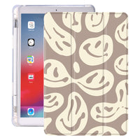 Idocolors Cute Ghost Face Pad Case For Ipad 5Th/6Th Generation White Anti Scratch Lightweight With Pencil Holder Trifold Stand C