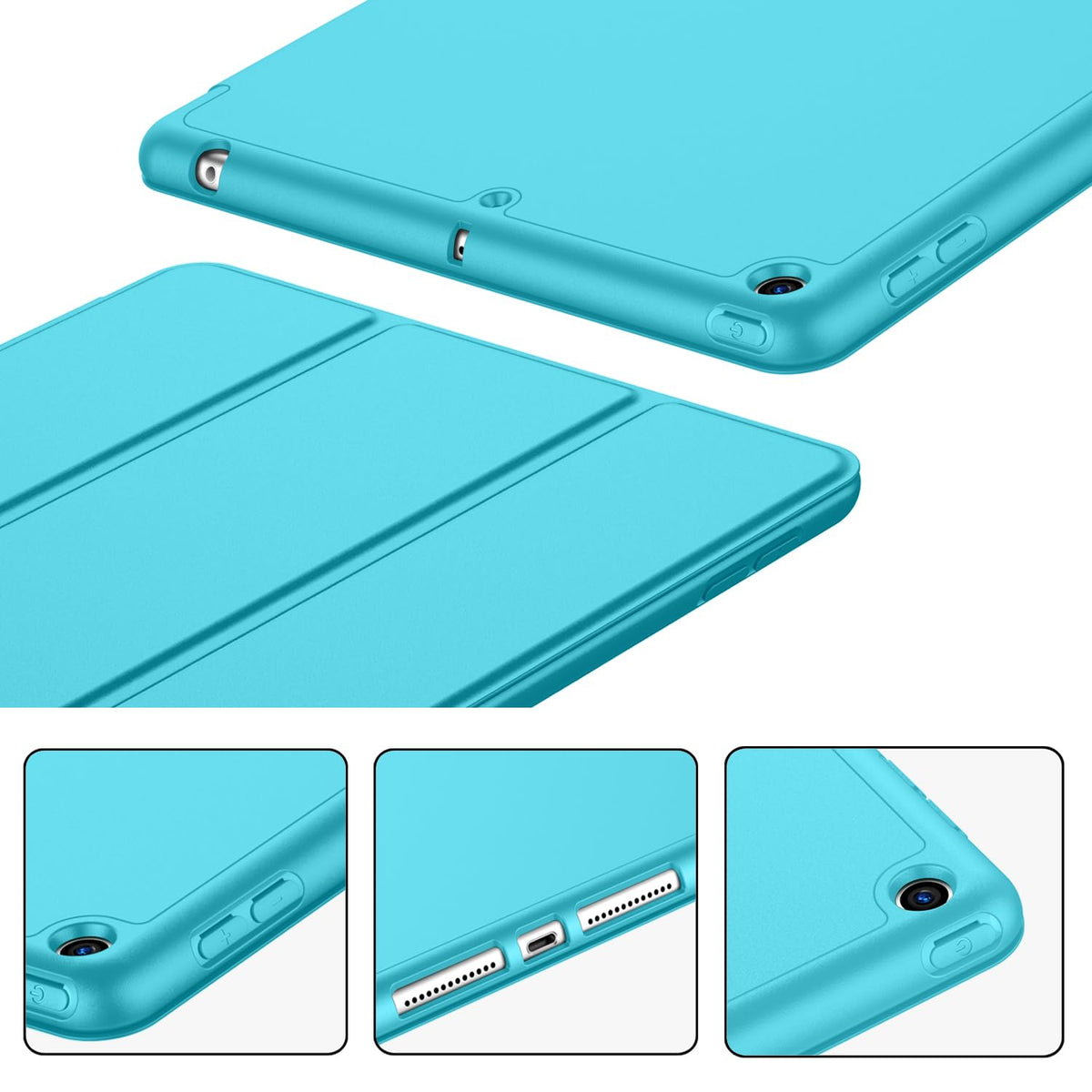 Imieet Ipad 9Th Generation Case 2021/Ipad 8Th Generation Case 2020 10.2 Inch With Pencil Holder, Ipad 7Th Gen 2019 Case With Soft Baby Skin Silicone Back, Auto Wake/Sleep Cover (Cyan)