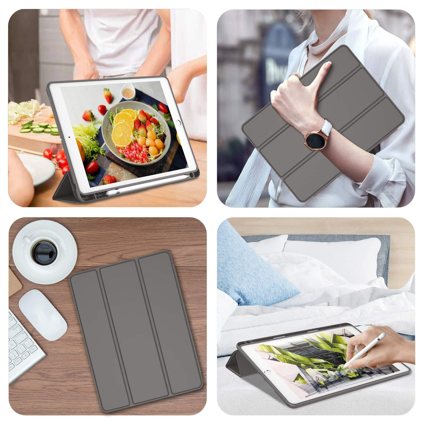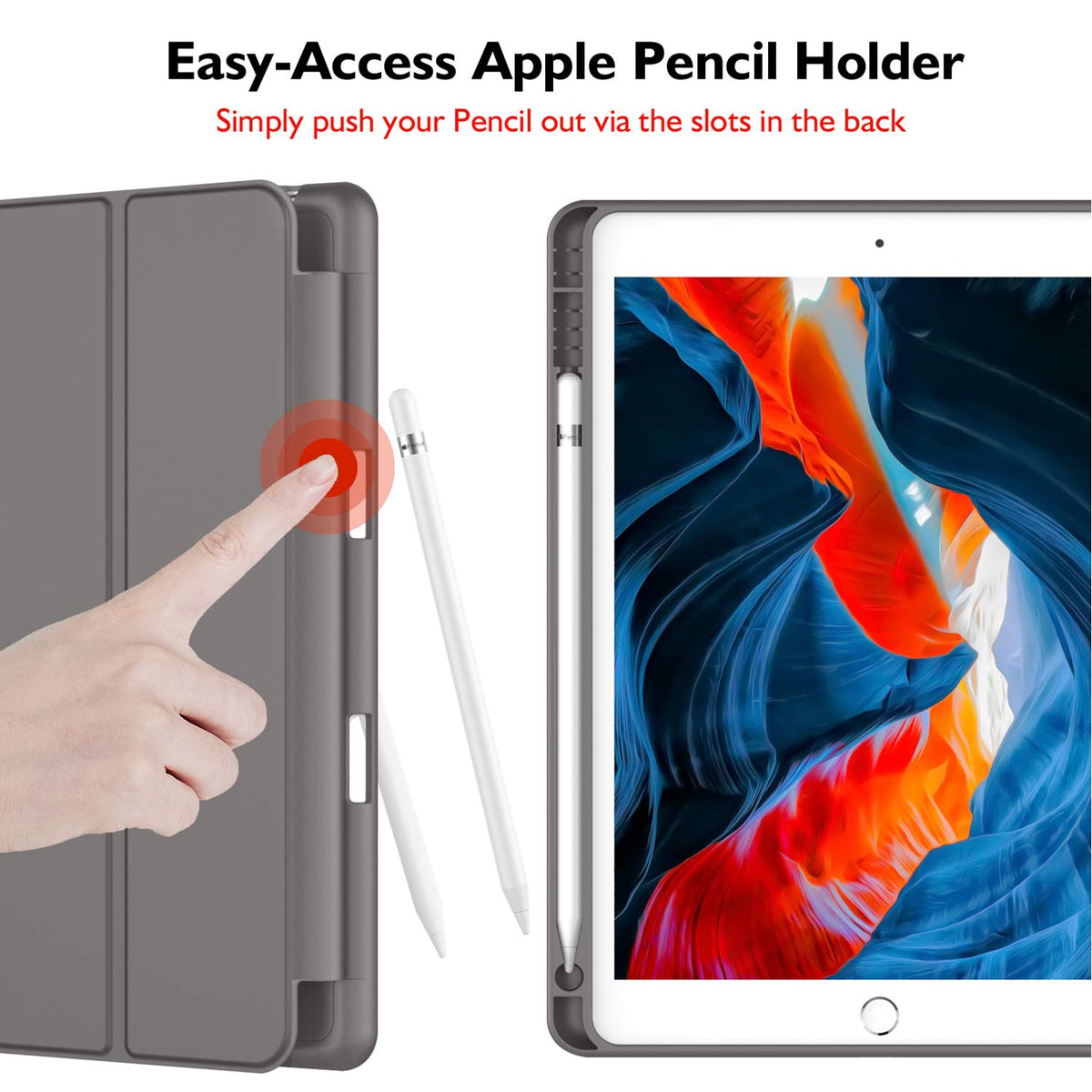 Imieet Ipad 9Th Generation Case 2021/Ipad 8Th Generation Case 2020 10.2 Inch With Pencil Holder, Ipad 7Th Gen 2019 Case With Soft Baby Skin Silicone Back, Auto Wake/Sleep Cover (Dark Gray)