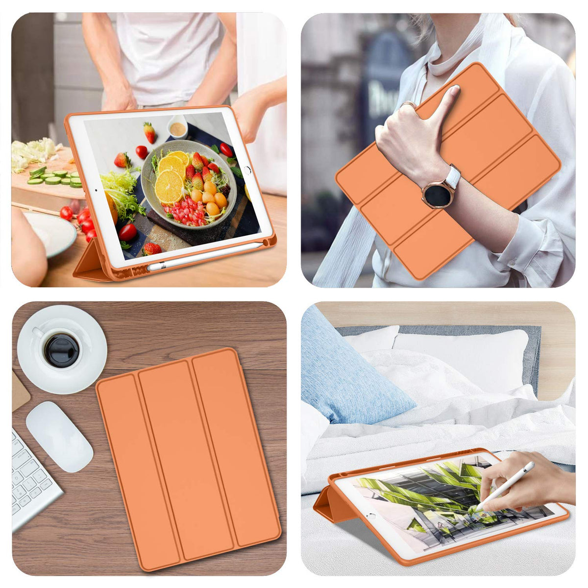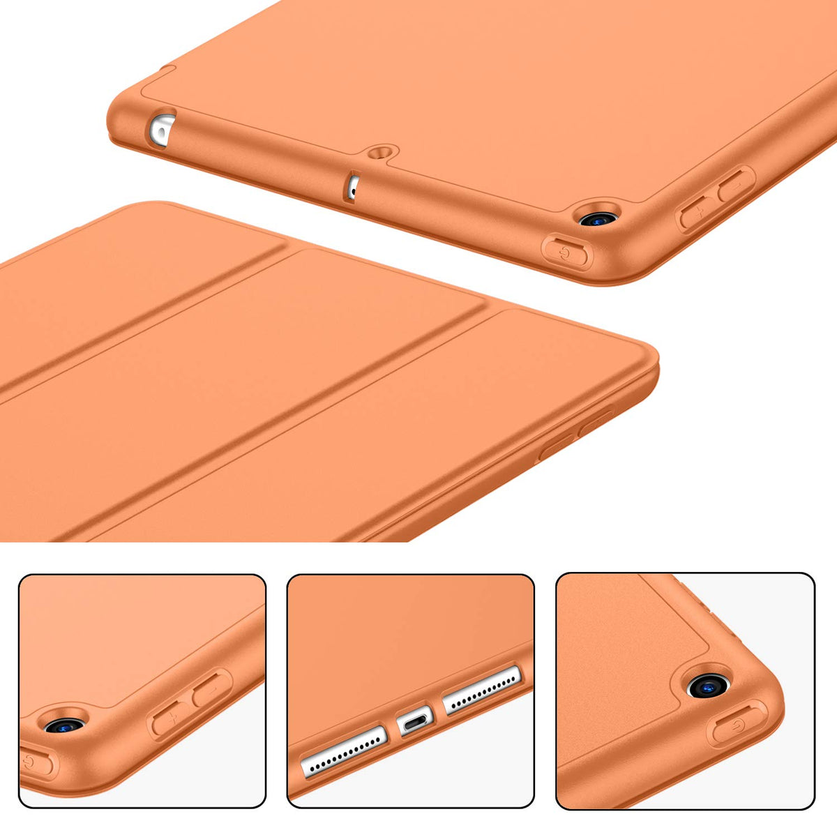Imieet Ipad 9Th Generation Case 2021/Ipad 8Th Generation Case 2020 10.2 Inch With Pencil Holder, Ipad 7Th Gen 2019 Case With Soft Baby Skin Silicone Back, Auto Wake/Sleep Cover (Orange)