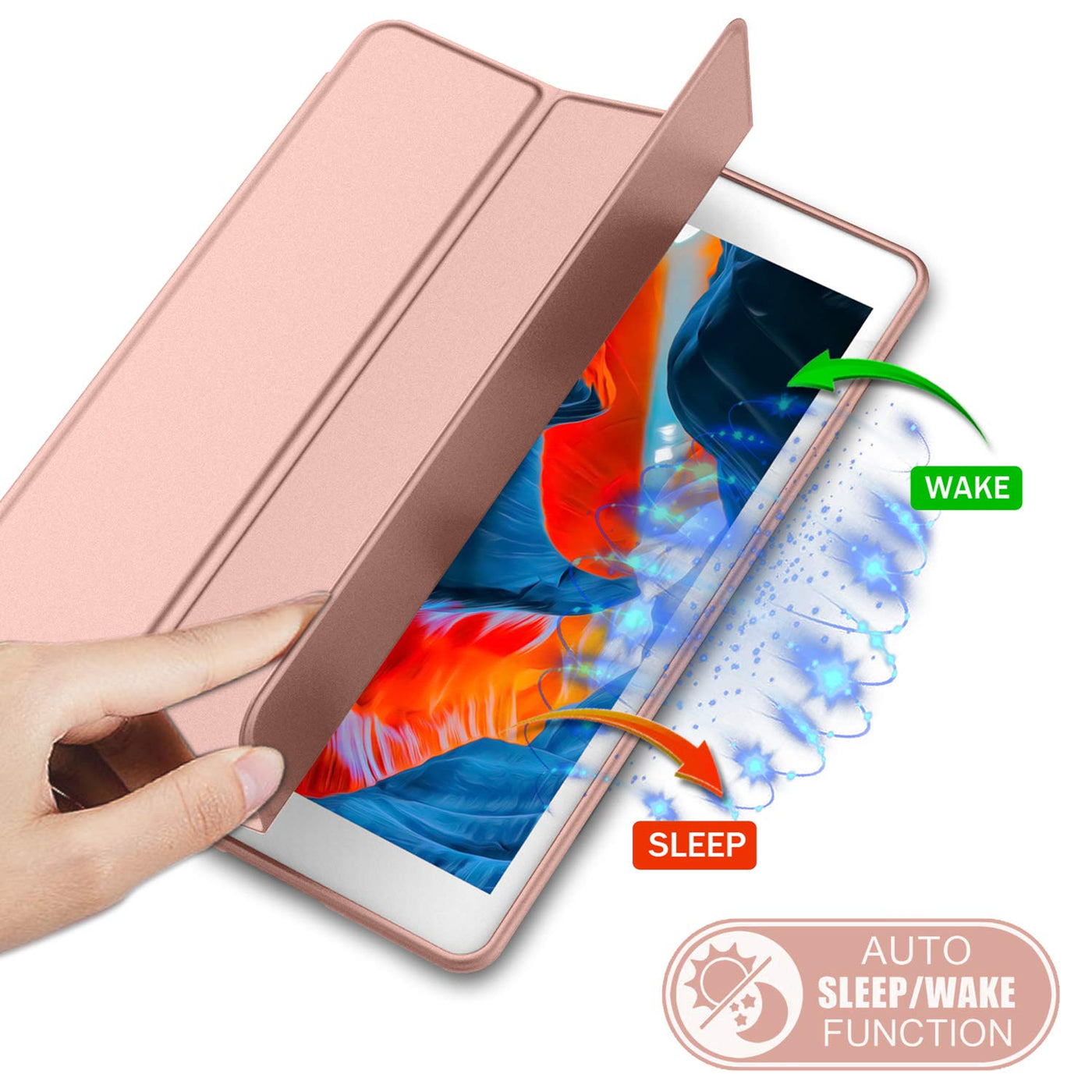 Imieet Ipad 9Th Generation Case 2021/Ipad 8Th Generation Case 2020 10.2 Inch With Pencil Holder, Ipad 7Th Gen 2019 Case With Soft Baby Skin Silicone Back, Auto Wake/Sleep Cover (Rose Gold)