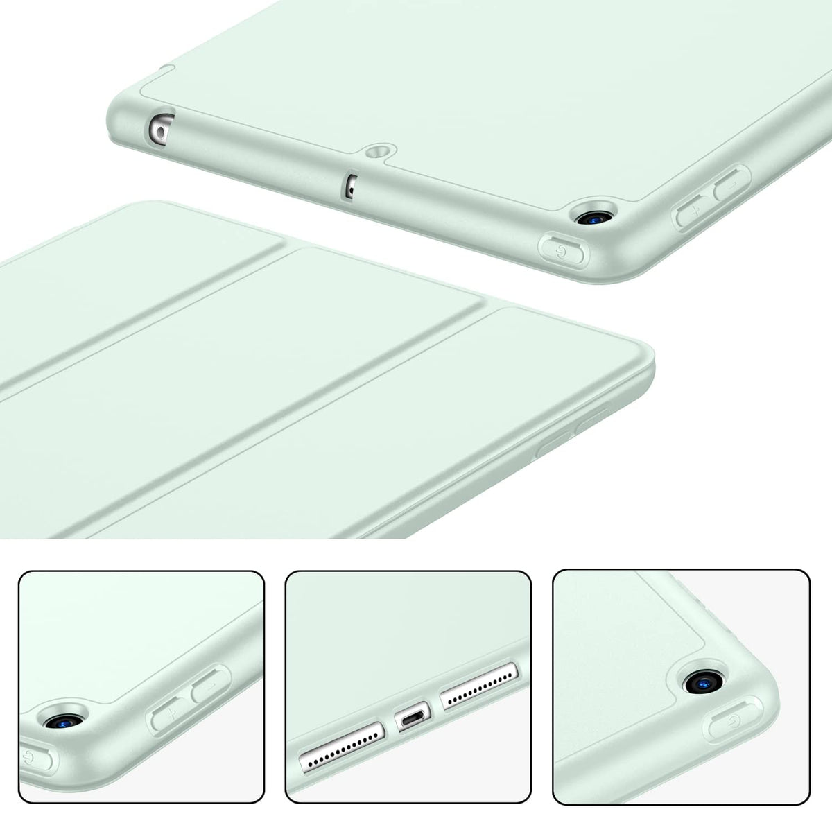 Imieet Ipad Case 2021/2020/2019 10.2 Inch, Soft Silicone Back, Pencil Holder, Auto Wake/Sleep Cover (Pale Green)