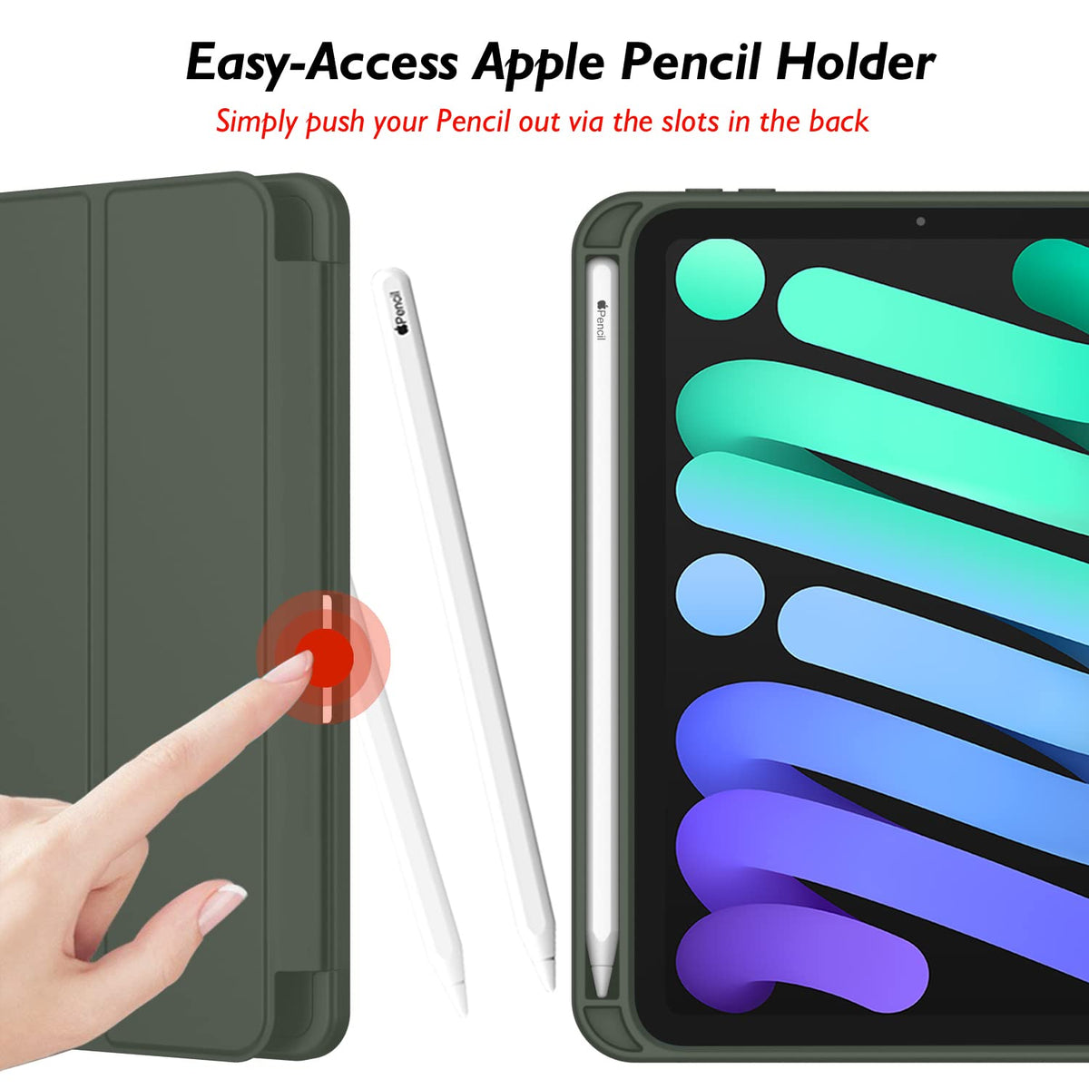 Imieet Ipad Mini 7 Case 2024 (A17 Pro), Ipad Mini 6 Case (8.3 Inch,2021 Model), Ipad Mini 7Th/6Th Generation Case With Pencil Holder, Trifold Stand Smart Case With Soft Tpu Back,Dark Green