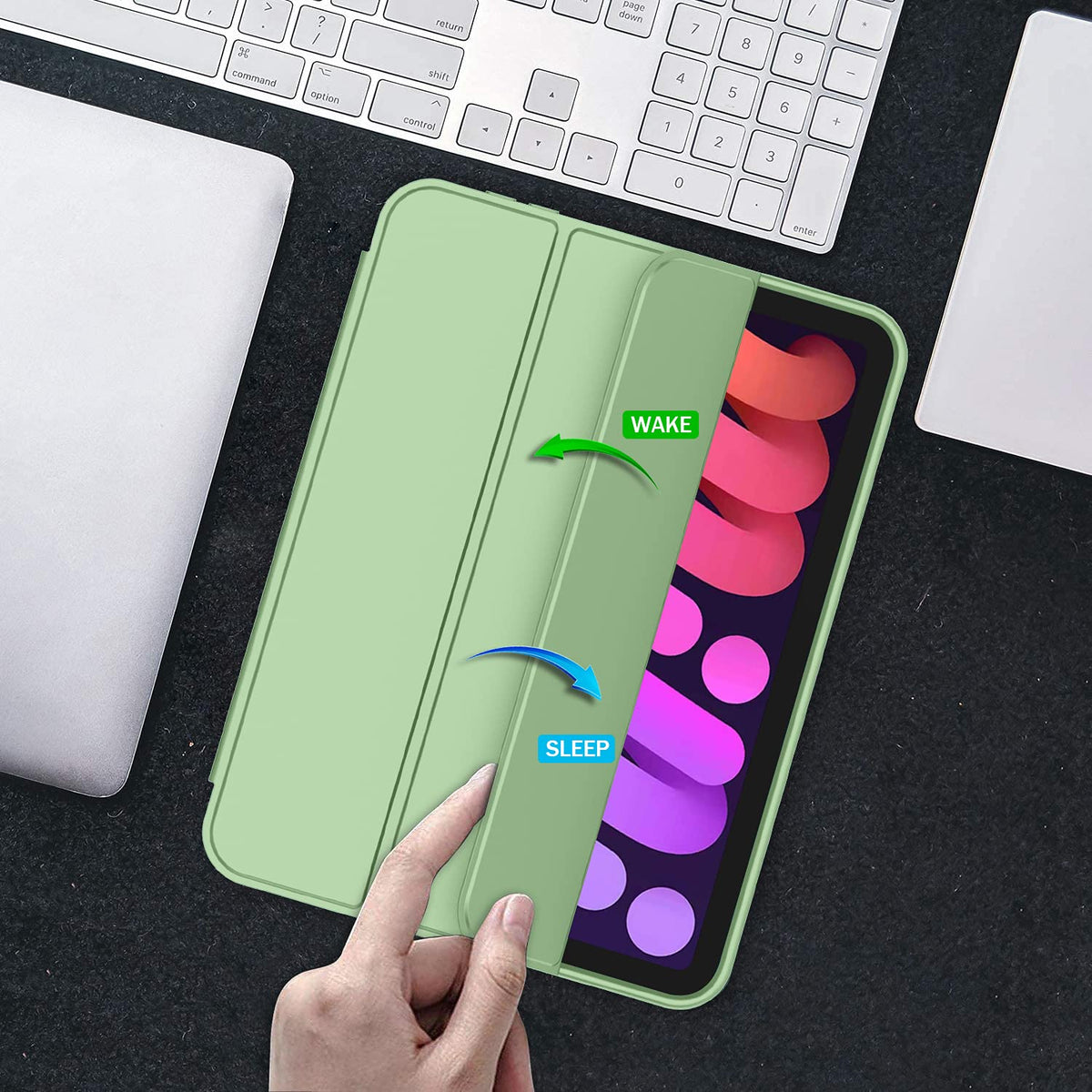 Imieet Ipad Mini 7 Case 2024 (A17 Pro), Ipad Mini 6 Case (8.3 Inch,2021 Model), Ipad Mini 7Th/6Th Generation Case With Pencil Holder, Trifold Stand Smart Case With Soft Tpu Back,Matcha Green