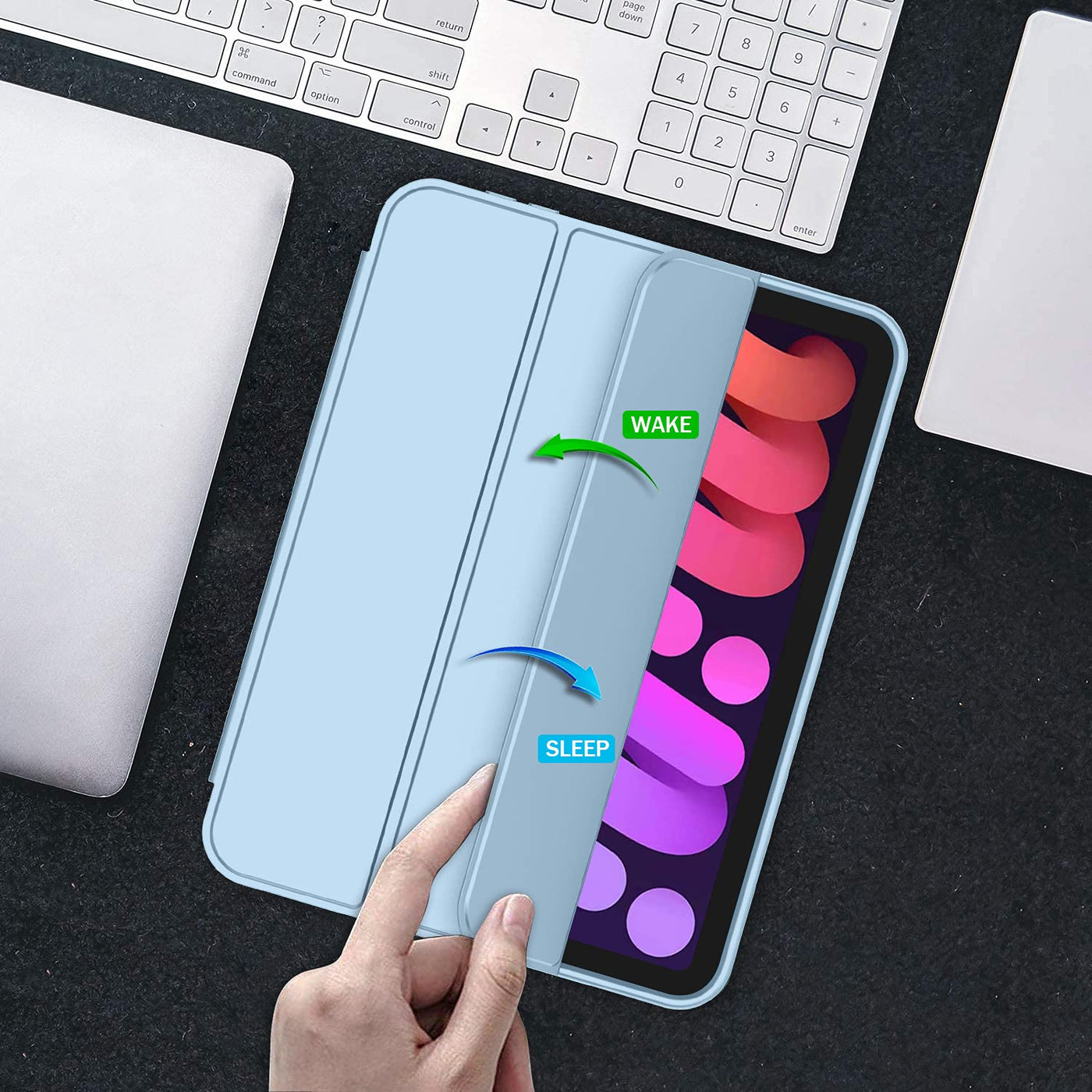 Imieet Ipad Mini 7 Case 2024 (A17 Pro), Ipad Mini 6 Case (8.3 Inch,2021 Model), Ipad Mini 7Th/6Th Generation Case With Pencil Holder, Trifold Stand Smart Case With Soft Tpu Back,Sky Blue