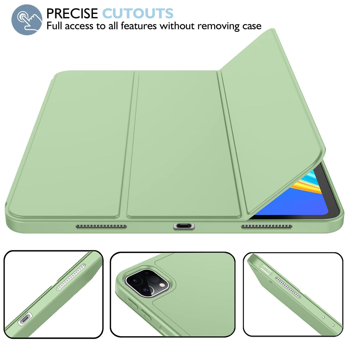 Imieet Ipad Pro 12.9 Inch Case 2022/2021/2020/2018 (6Th/5Th/4Th/3Rd Gen) With Pencil Holder [Support Ipad 2Nd Pencil Charging],Trifold Stand Smart Case With Soft Tpu Back,Auto Wake/Sleep(Matcha Green)